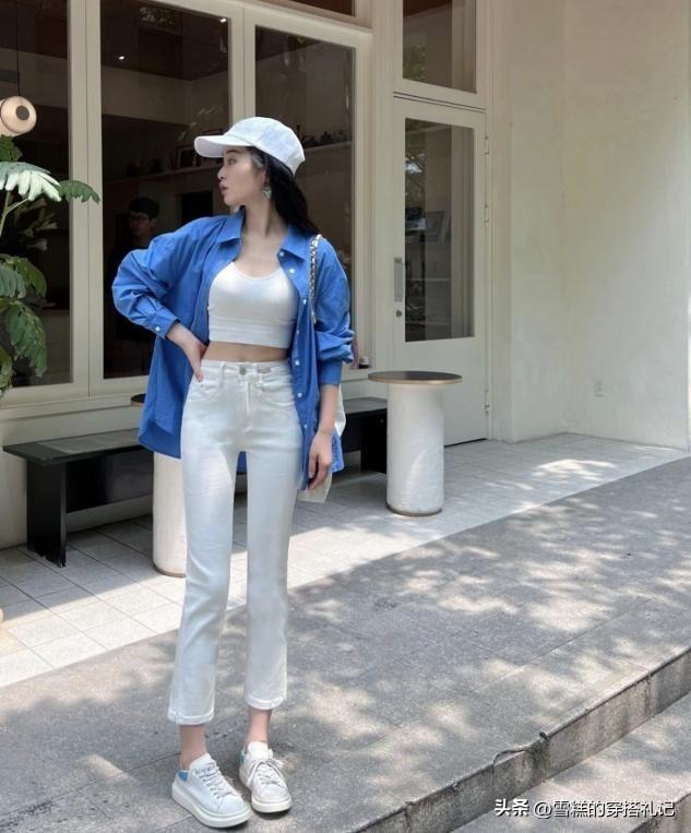 卡腰款式的卡布裏褲,對於身材包容性也恰到好處,畢竟卡亞的位置都伴隨着高腰線條的走向,那麼自然就可以達到縮減上半身線條的效果,穿搭短款上衣,直接露出腰線,造型精緻感也很明顯。
