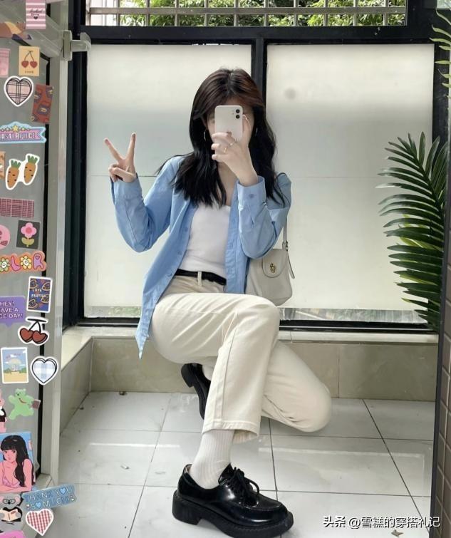 ⒊小個子身材=高腰淺色卡布裏褲