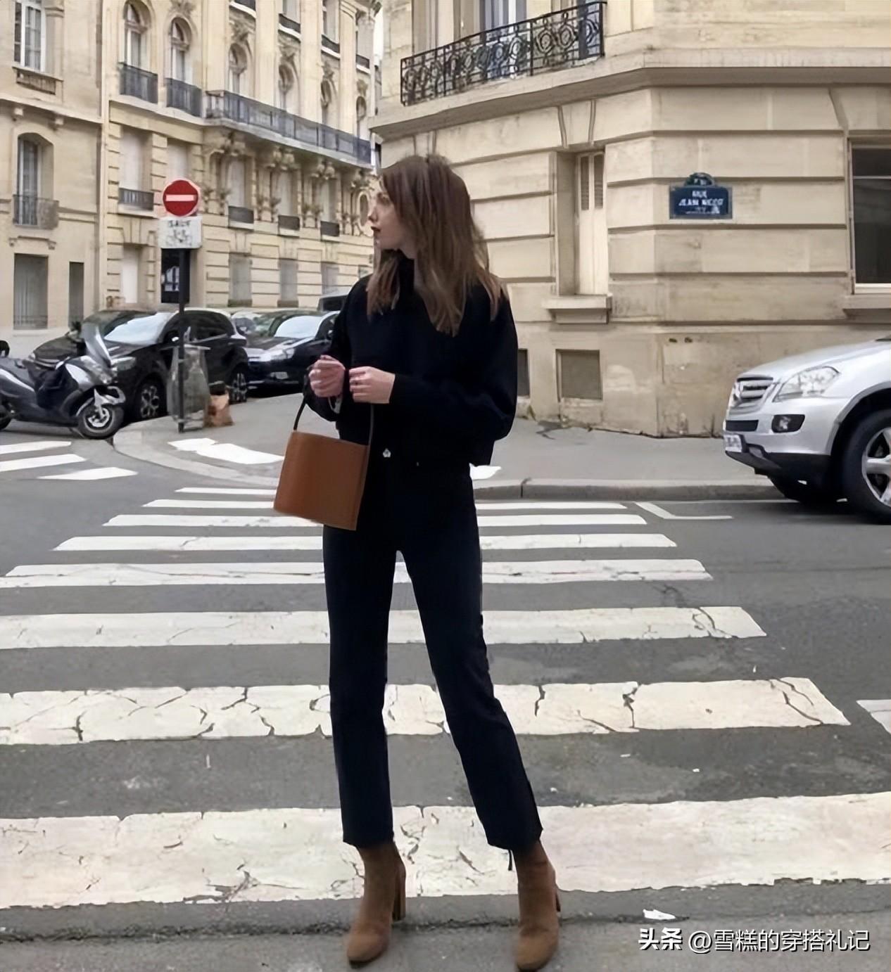 體型本身就偏瘦的女生,穿卡布裏褲就更具有優勢了,用純黑色來作爲底色配色的時候,可以減少線條不必要的膨脹感,是出身材體型偏瘦的絕對特徵,褲裝可以稍微修身一點,展示出腰臀線條的精緻感。