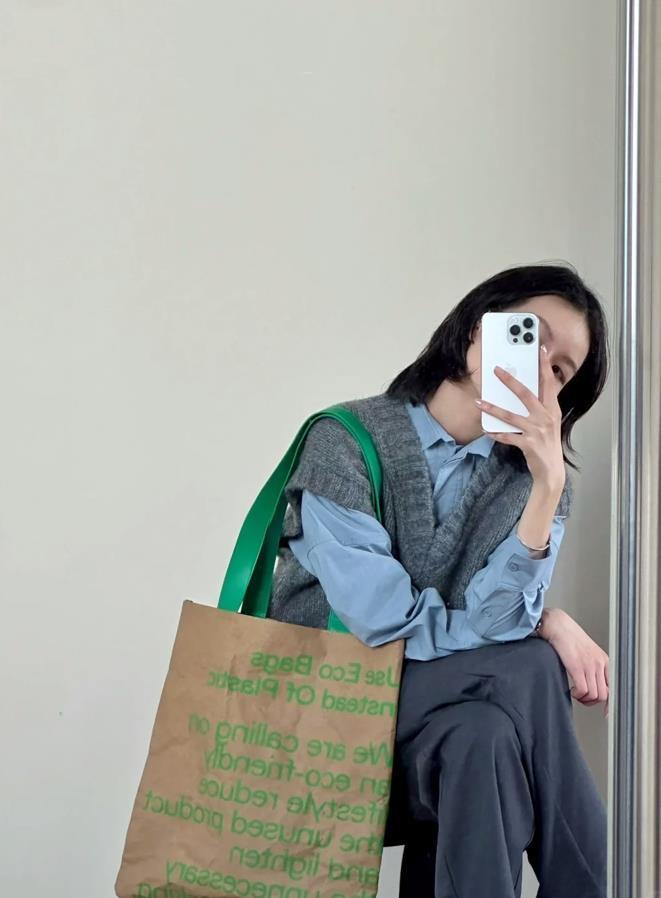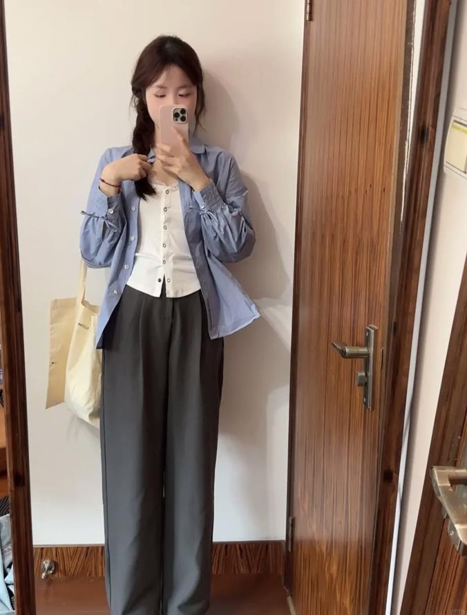 這個春天,還得是藍灰配色啊,襯衫+馬甲的疊穿,實在是太喜歡了,不僅打造出層次感,還非常時髦。