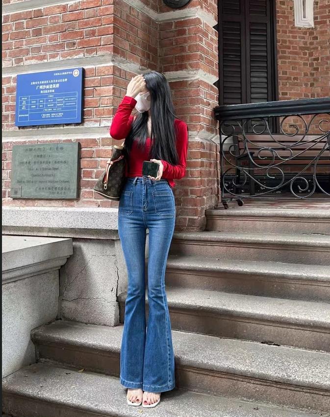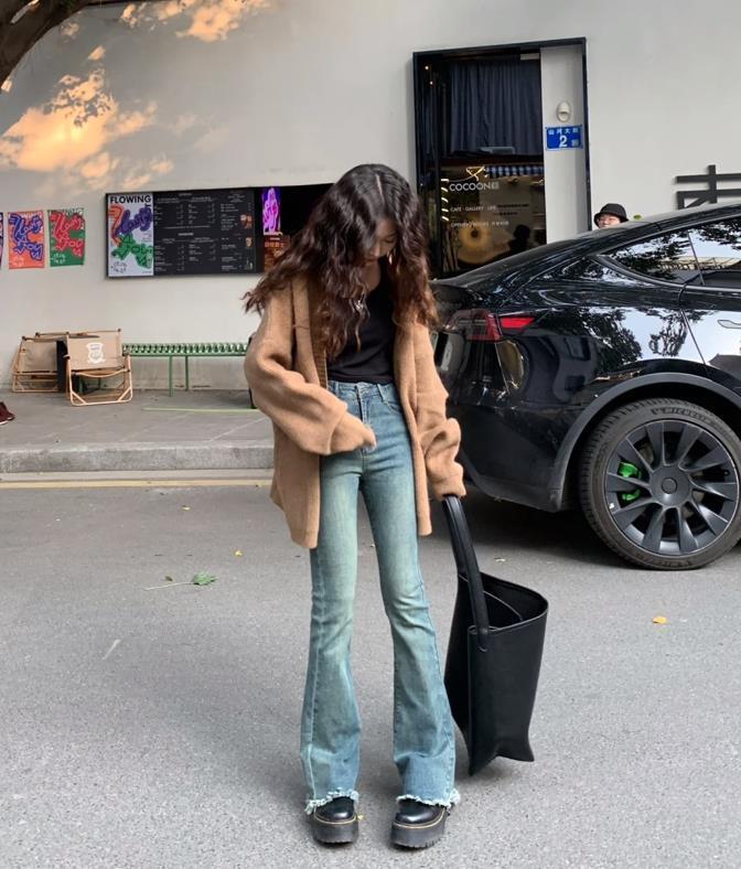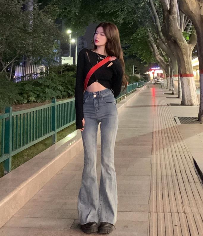 這條牛仔馬蹄褲是真的絕了,顯瘦百搭就是它的優點,真的好愛,修飾腿長效果也是一絕的。