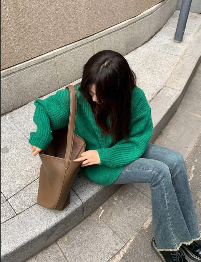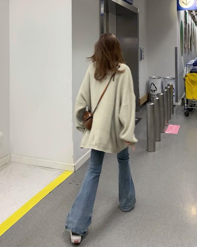 今年真的是特別愛這種寬大版型的毛衣,質感和麪料都是很不錯的,這樣的版型可藏肉顯瘦了,搭配喇叭馬蹄褲,看起來就非常顯瘦顯腿長。