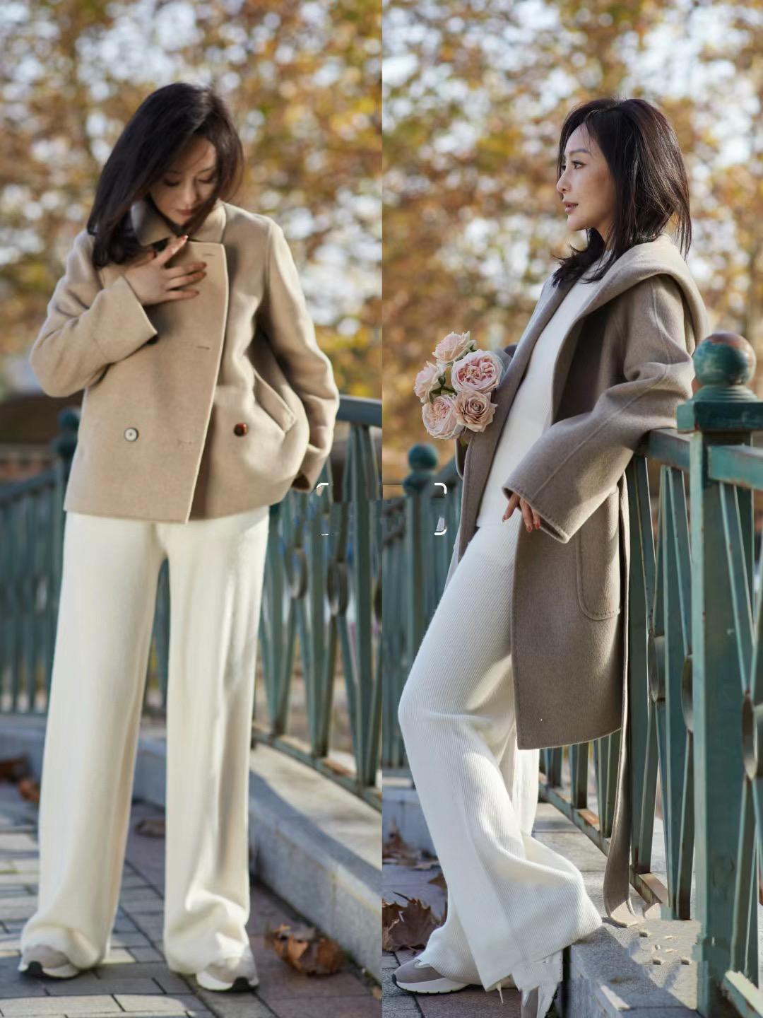 早春季節,乍暖還寒時候。對於四五十歲的女人來講,一定要注意保暖。毛呢外套軟糯又防風,我們可以選擇短款的毛呢外套,配高腰的闊腿褲、搭運動鞋就很舒適顯高。