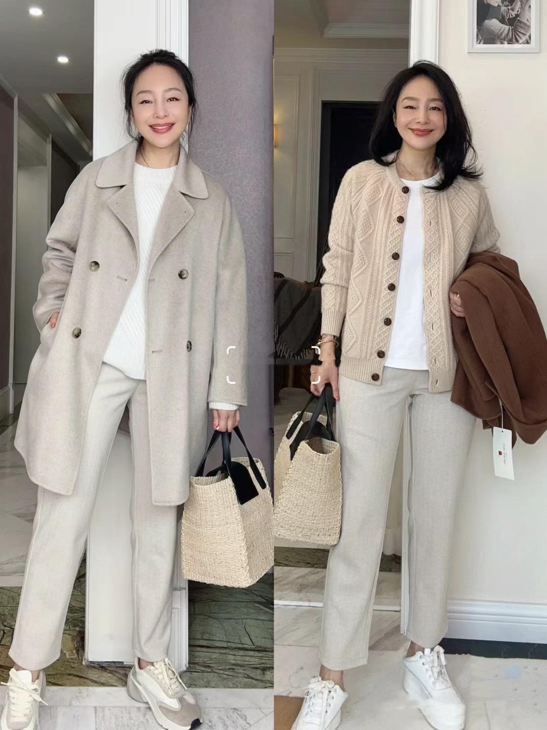 我們可以選擇基礎且耐看的色系,以溫和的色調塑造視覺上的大氣感。服裝的款式也應該更加經典耐看,基礎、休閒、無齡感服裝,都值得嘗試。