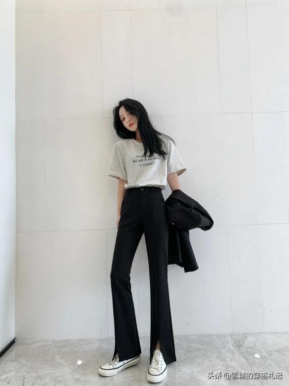 不管什麼風格的造型,一定要具有變化才能夠讓人眼前一亮,所以闊腿褲已經失去了它百搭的地位,今年馬蹄褲+平底鞋纔是真正的時髦穿搭。