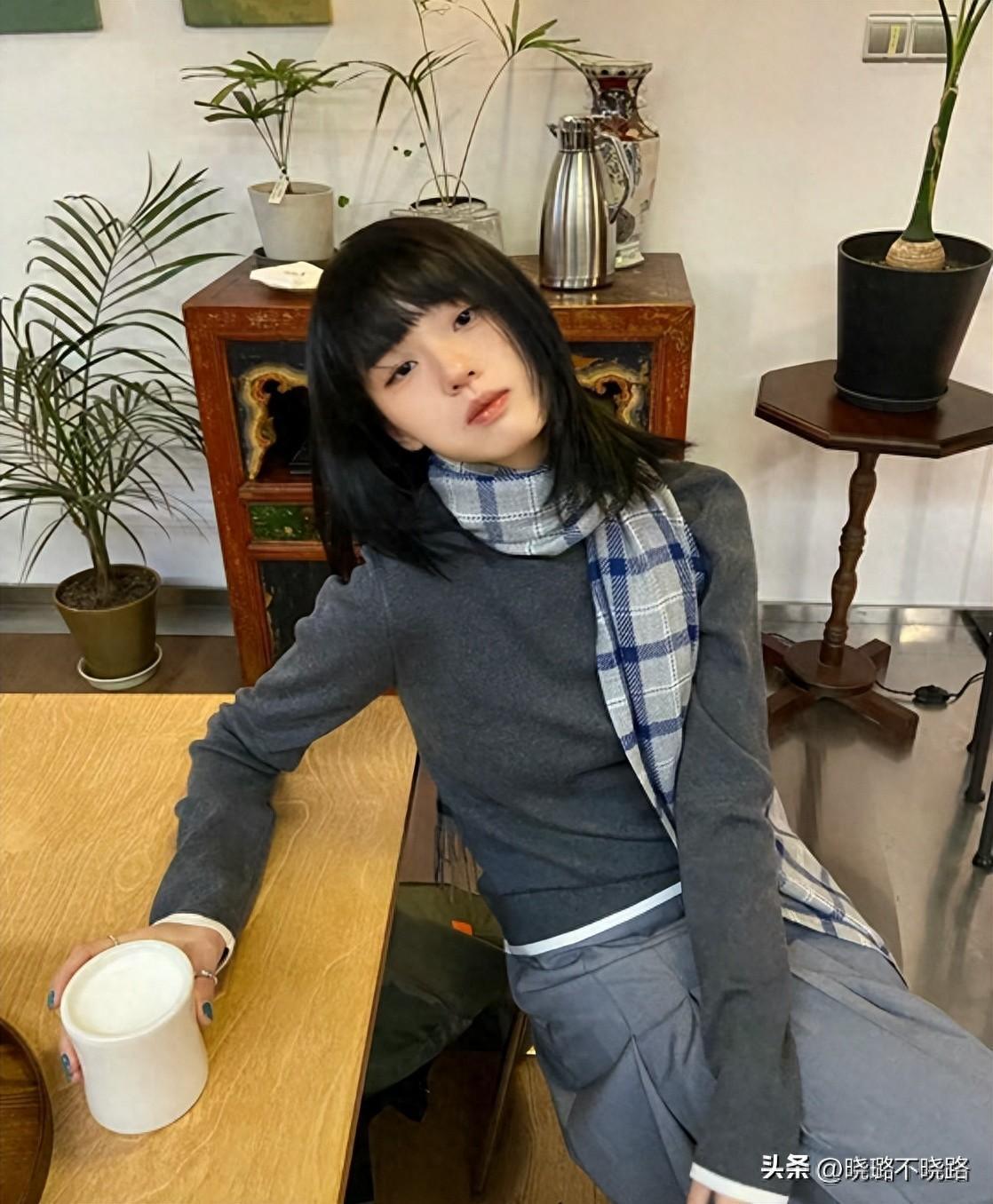 普通的西裝面料光滑,過於幹練成熟,展現的是職場感,跟灰色其實並不是那麼搭,灰色的風格底色是文藝的,毛呢面料明顯更加文藝,跟灰色更加適配,能夠更好地展現出灰色的慵懶和文藝。