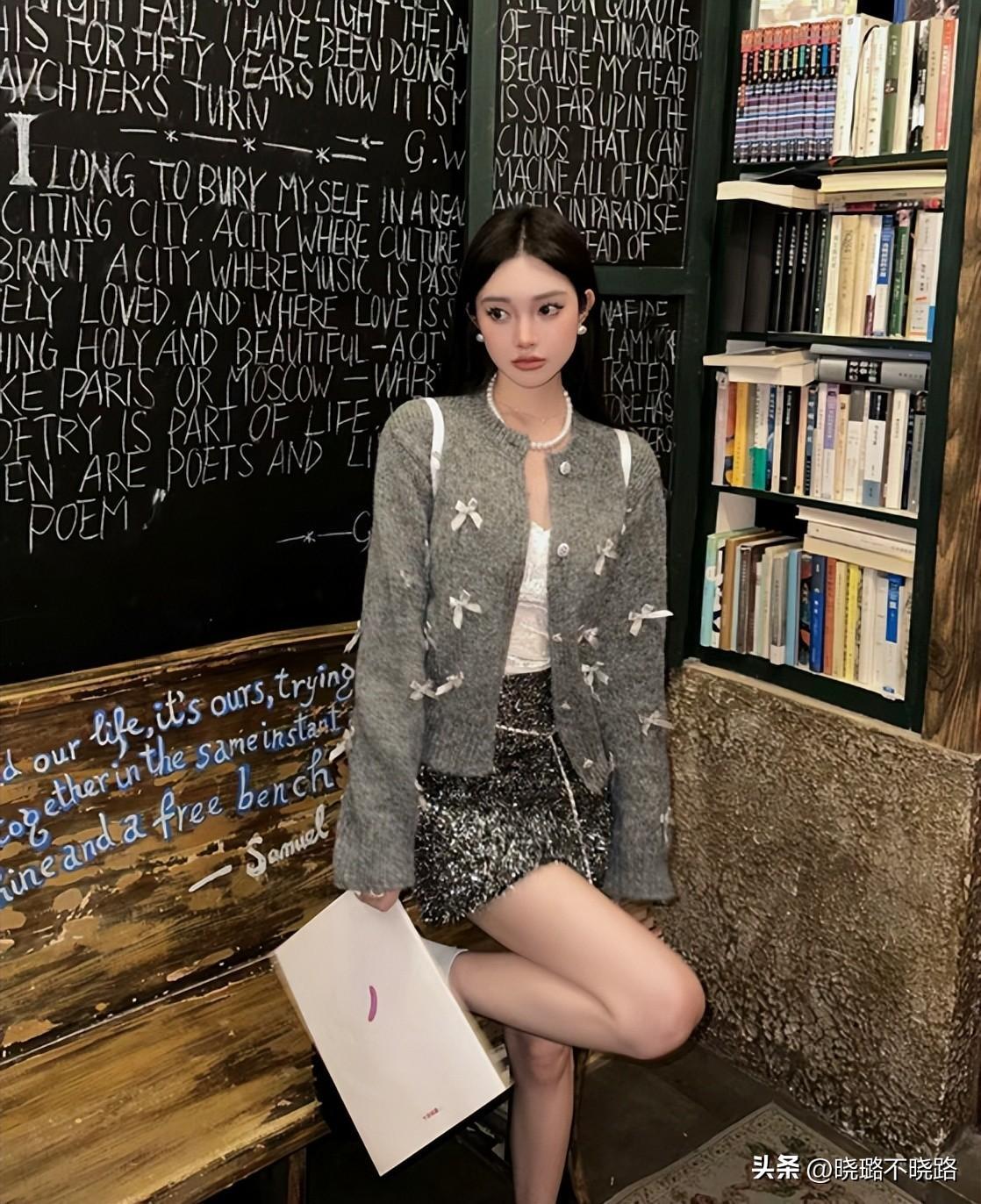 (2)蝴蝶結爲格雷系穿搭增加少女感