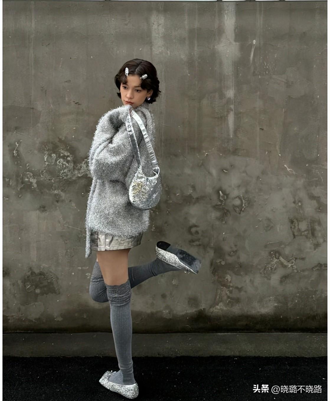 除了灰色以外,銀色也是近段時間最火的顏色,並且銀色很亮堂,跟灰色屬於同色系,這樣一來銀色和灰色相當於一明一暗,即使是同色系穿搭也能輕鬆穿出層次感,既高級有質感,又時尚吸睛。