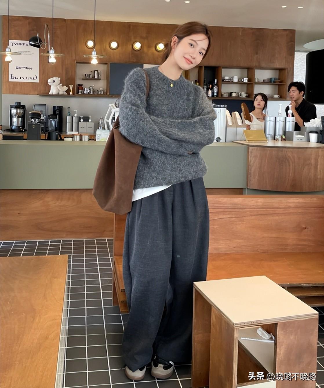 灰色的針織衫在春季算是大熱單品,薄厚恰當,並且軟糯親膚,上身穿着舒適,灰色的針織衫更是慵懶百搭。我更建議大家選擇開衫款式的針織衫,視覺上可以兩穿,效果更佳哦。
