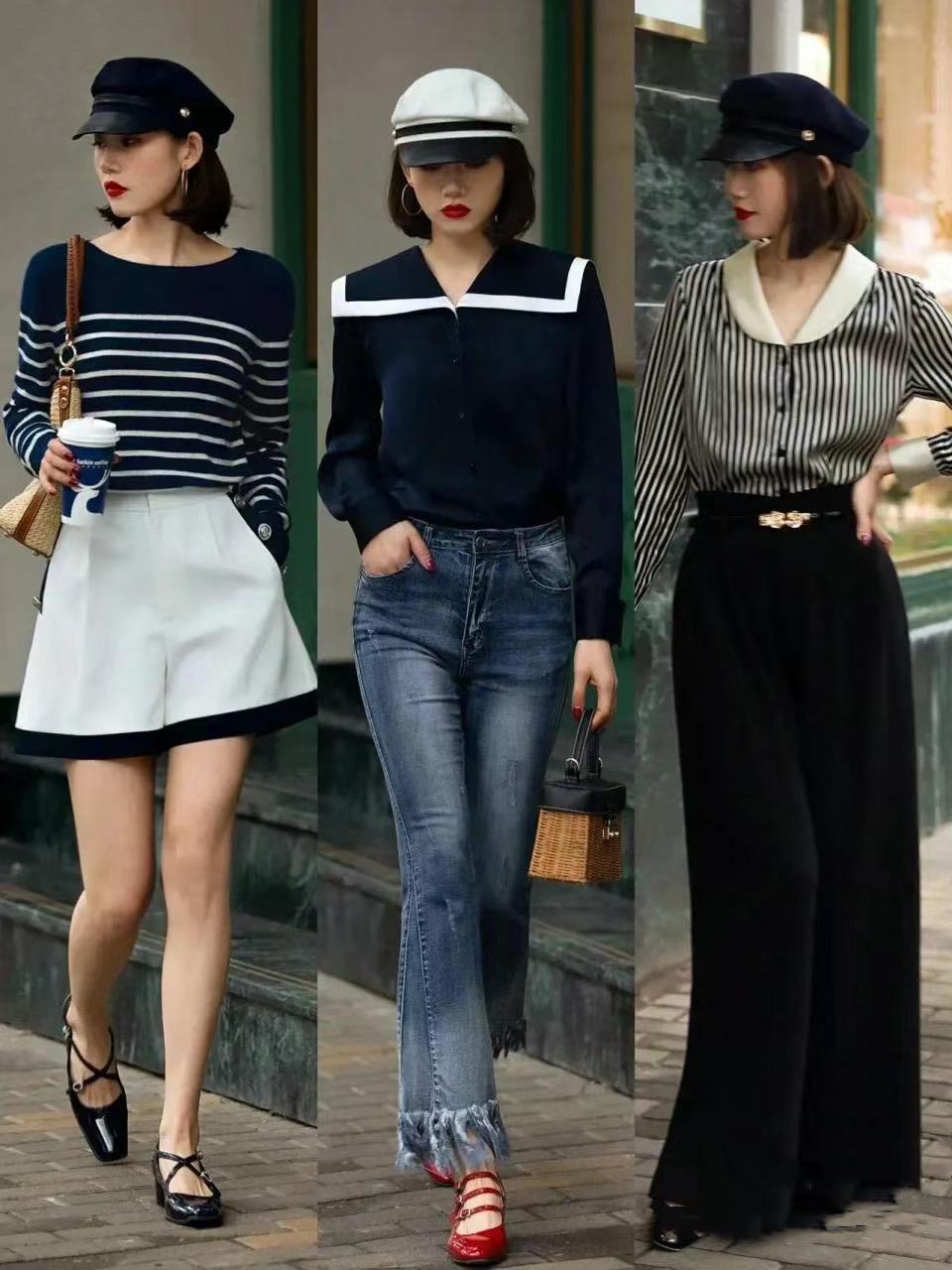 比如個性的飄帶襯衫、字母印花的半身裙,搭配了木耳邊的小香風套裙,開叉的微喇牛仔褲、綁帶的復古風單鞋等等,都選擇了打破常規的設計,格外時髦洋氣。