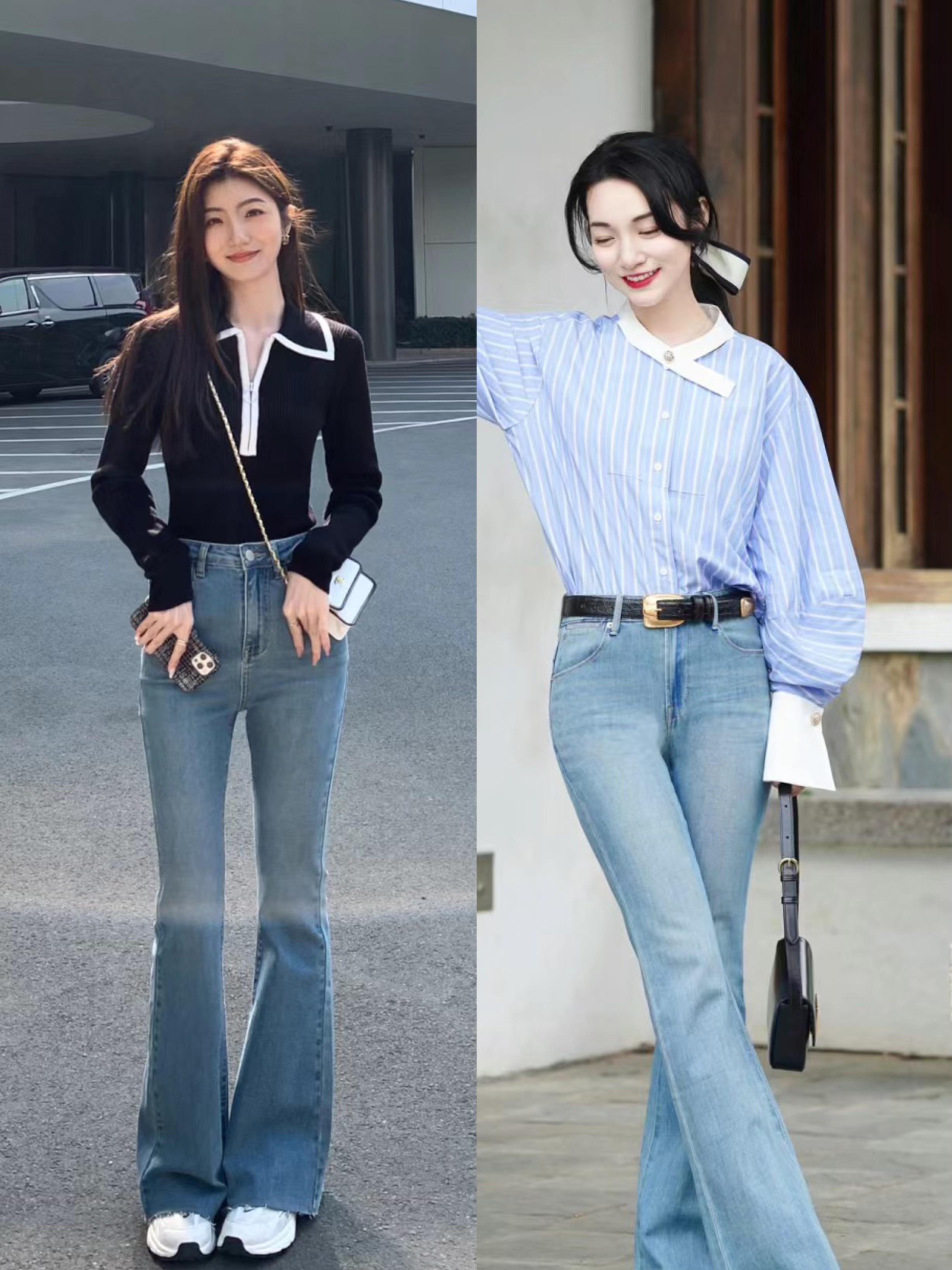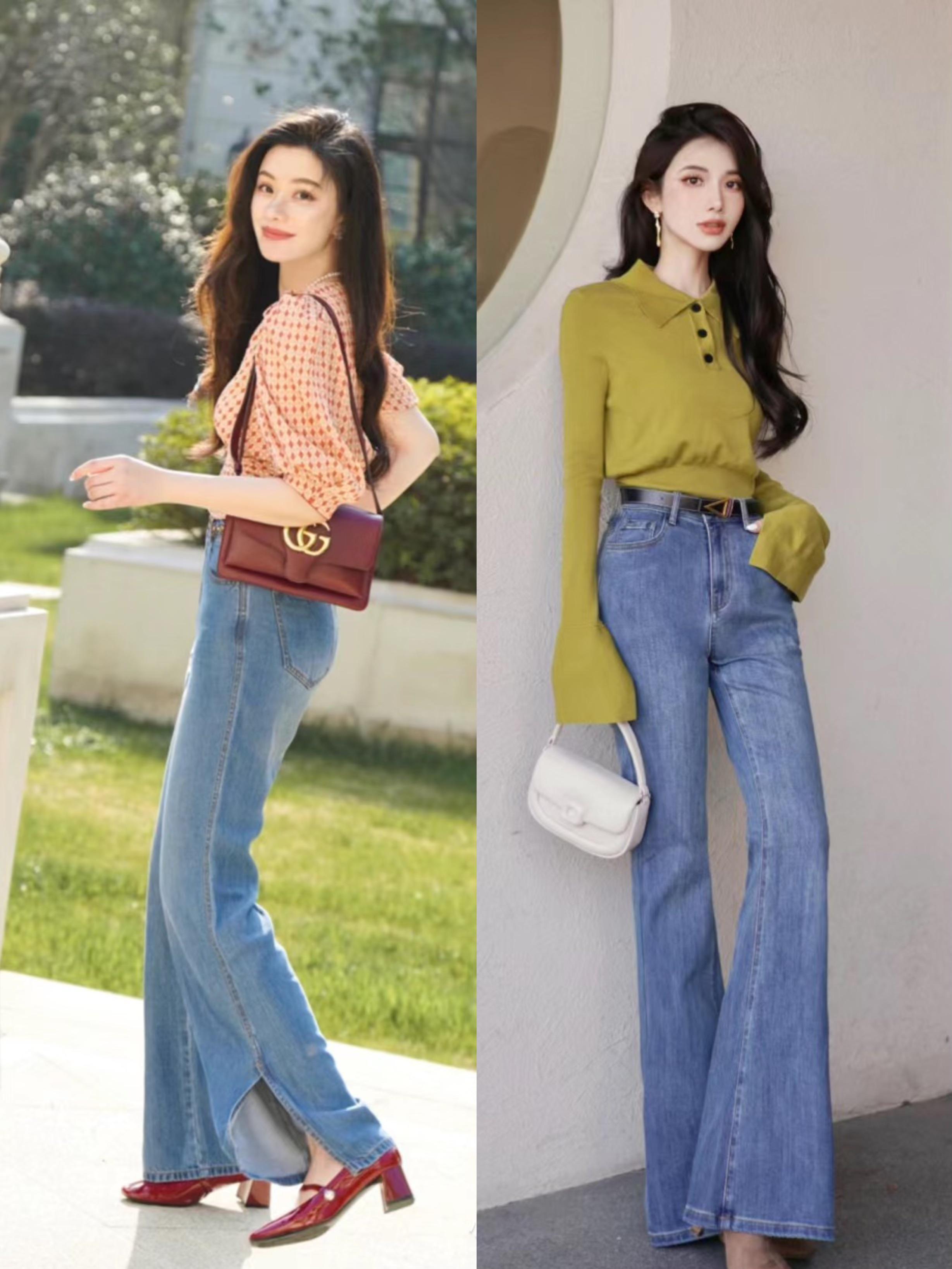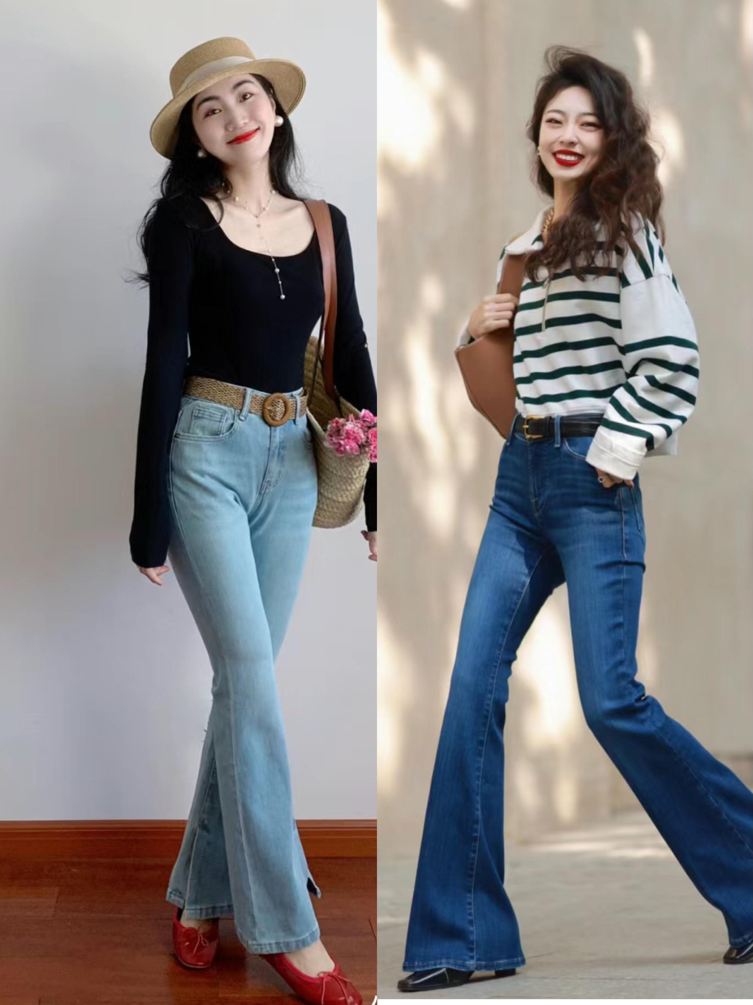 1、喇叭褲更洋氣、比常規牛仔褲更具修飾性
