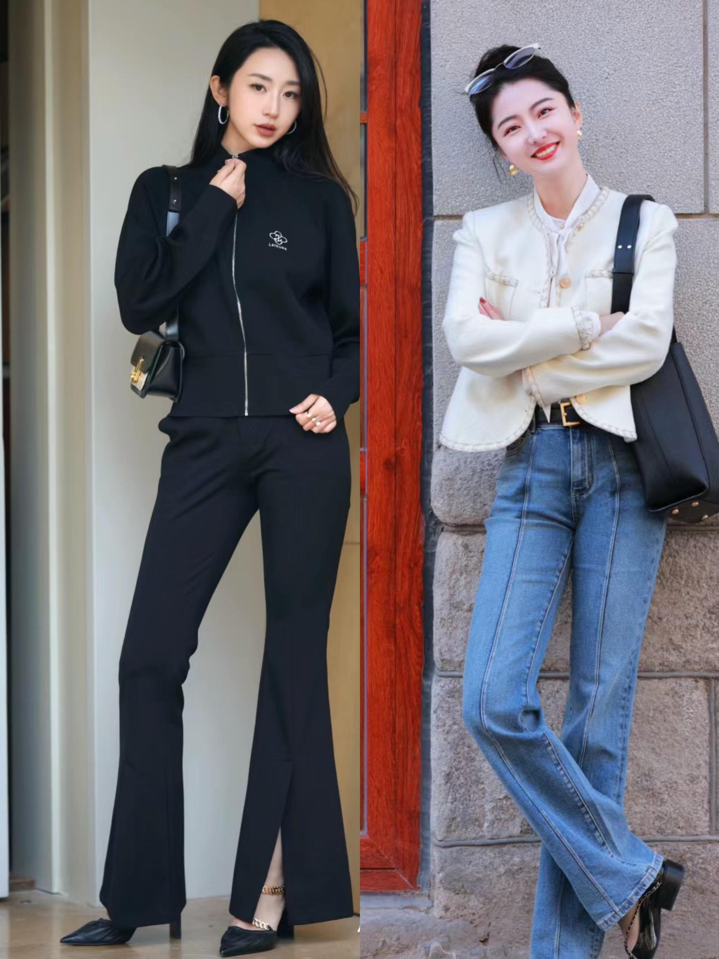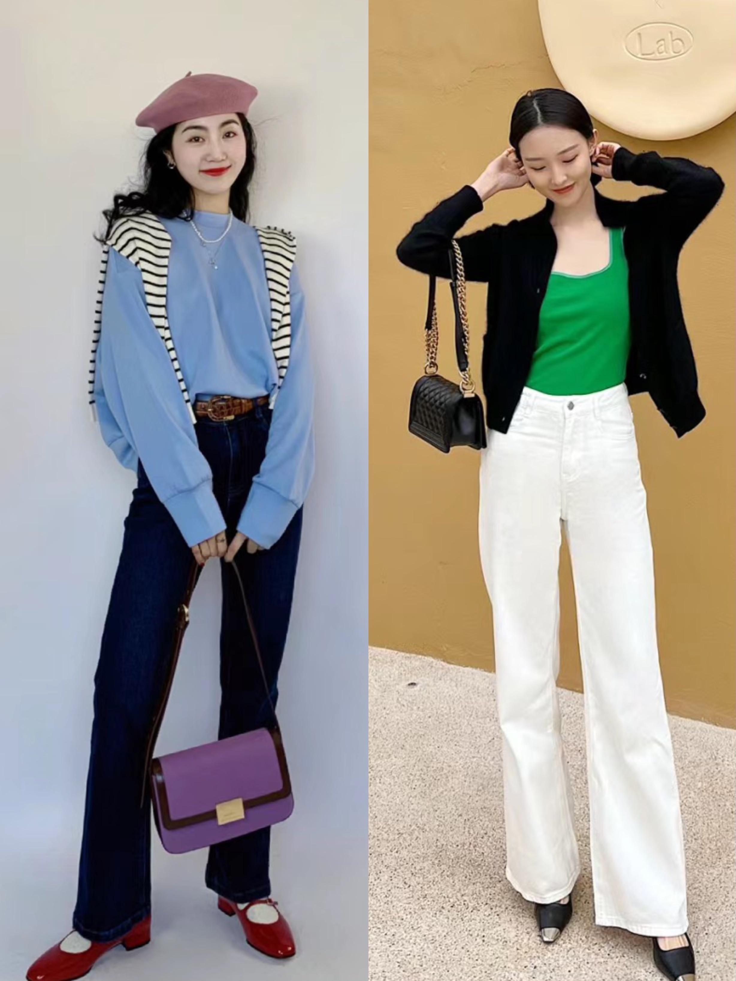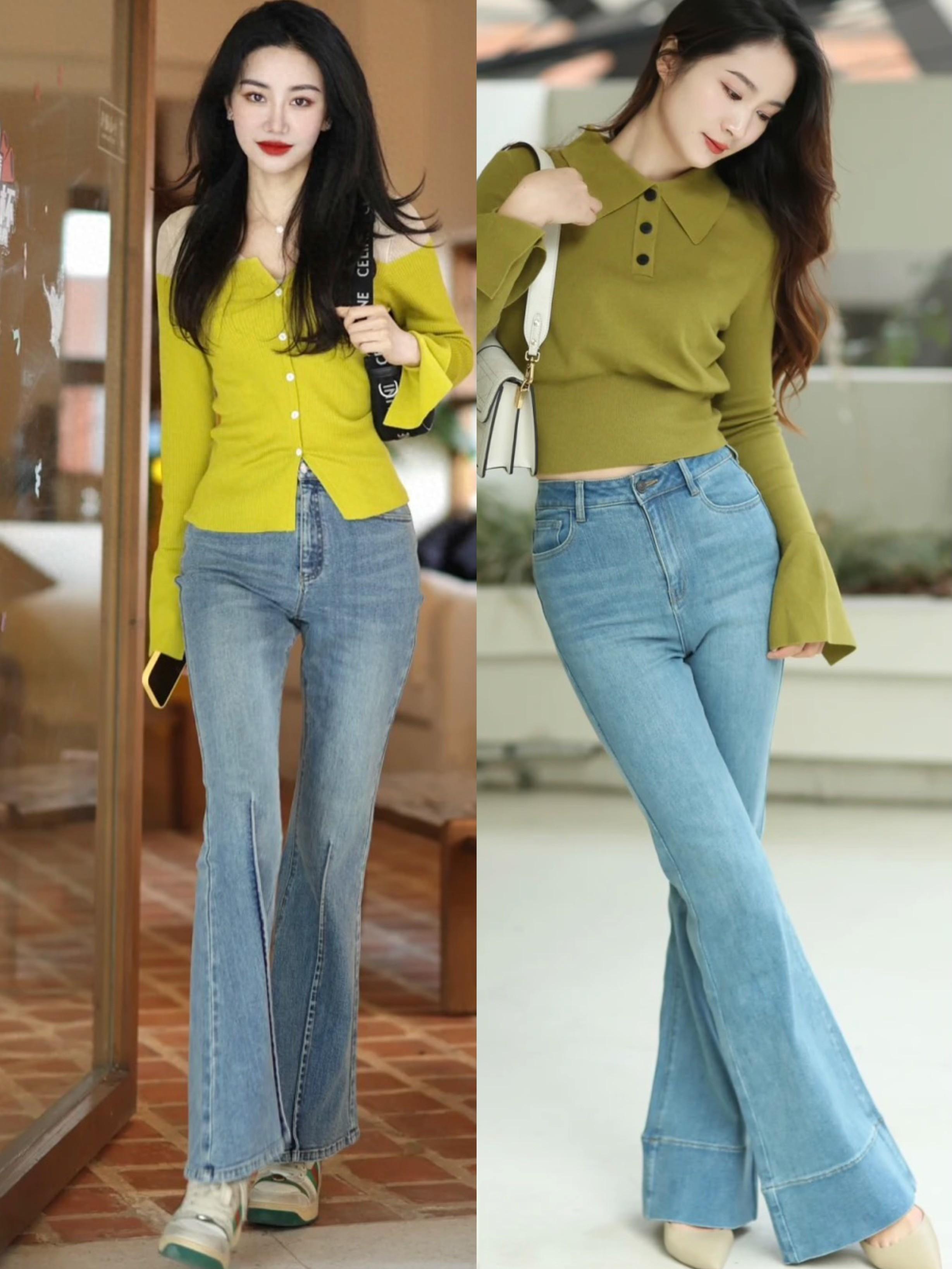 1、喇叭褲更洋氣、比常規牛仔褲更具修飾性