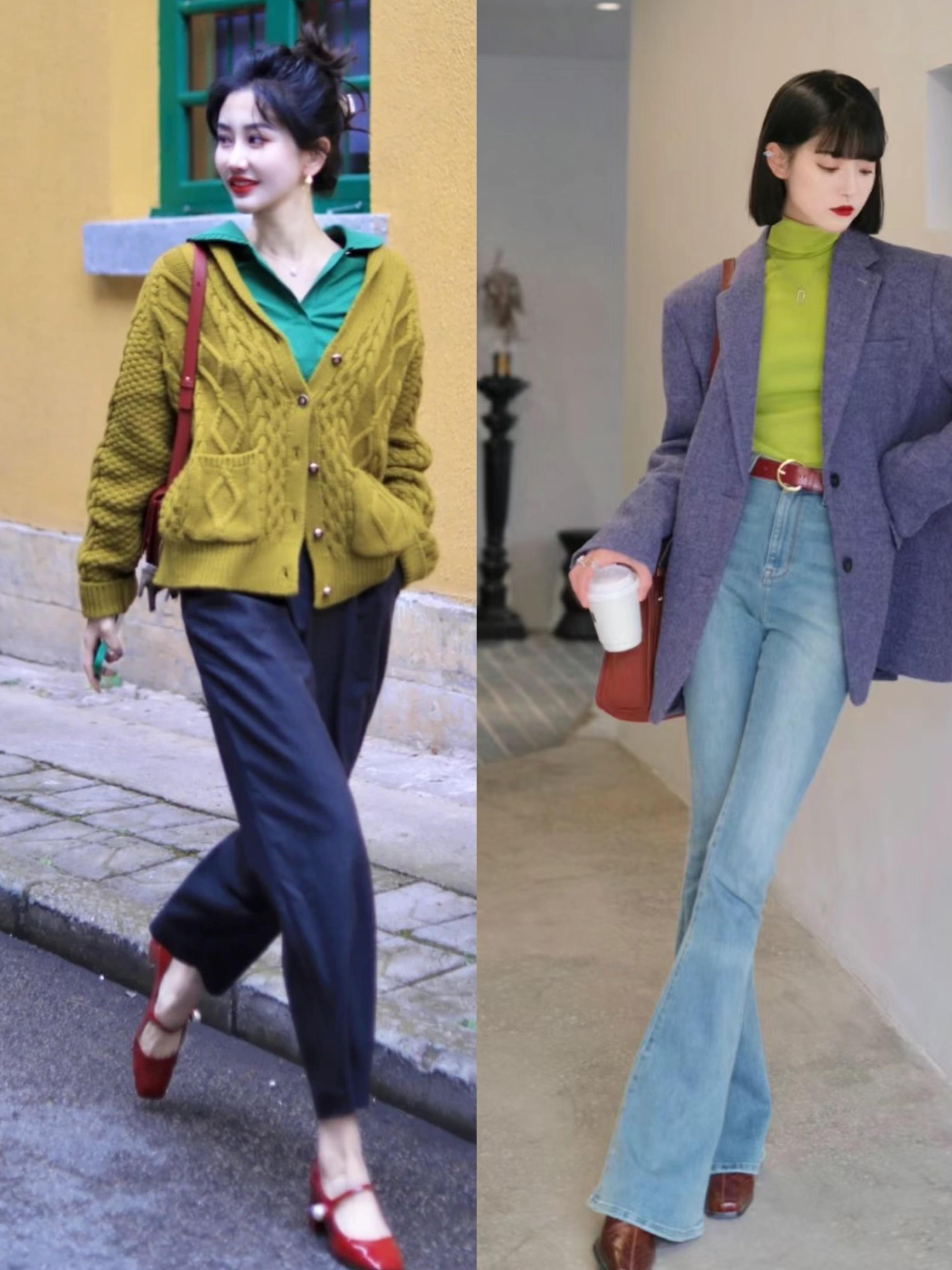 當我們選擇春季穿搭的時候,色彩上可以更加張揚醒目一些。比如色彩明亮的內搭、或者亮度比較高的上衣,以及個性的方跟鞋,都可以拉滿春日氛圍。