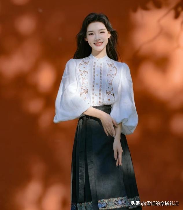 當下,我們流行起來的馬面裙穿搭,主要都是和立體的古風襯衫來進行組合,這種一入眼就非常明顯的上短下長穿法,簡約又適合通勤,稍微變換花色或者是刺繡的款式,我們又能夠適配出更多種的風格體驗。