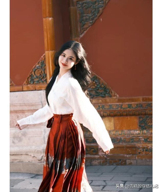 雖然我們眼前一亮的還是北京街頭的女生,滿街的馬面裙鮮豔靚麗,每一套穿搭都美到了我們的心頭上。不禁想讓我們也嘗試一下這種單品的時尚特徵,那麼,馬面裙的穿搭精髓,該如何很好的融入到日常穿搭當中來呢?