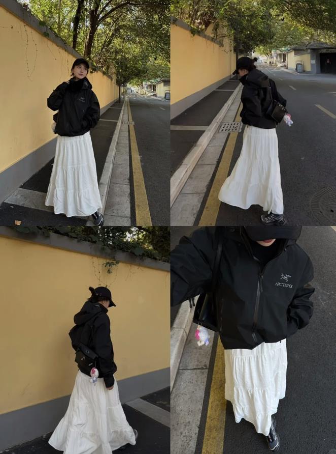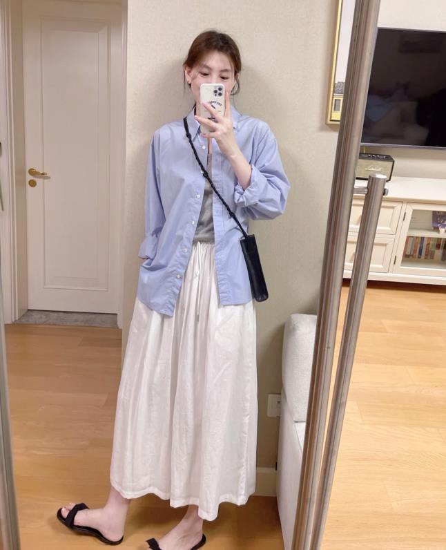 紗裙也太好看了,黑色法式襯衫+白色紗質半身長裙,看起來就很溫柔氣質,也不失優雅。小個子女生穿的話,記得要把腰線比例給提高起來,這樣纔不會壓低個子。
