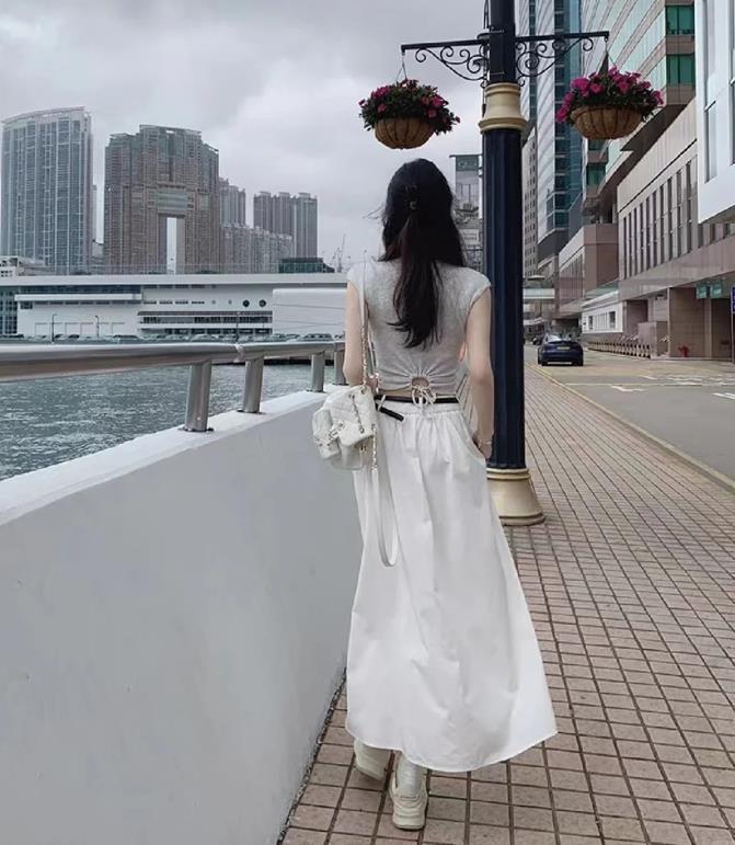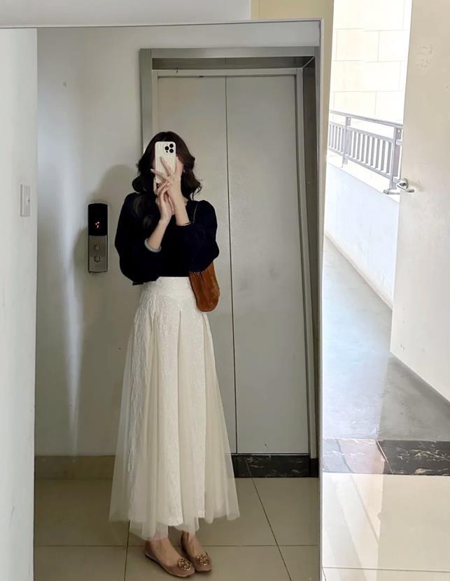 極簡風的白色紗質半身長裙,一眼就心動了,重工輕紗材質,垂墜感極佳的,也非常飄逸。走起來隨風飄動,很靈動。可以搭配任何上衣,如毛衣、西裝等。