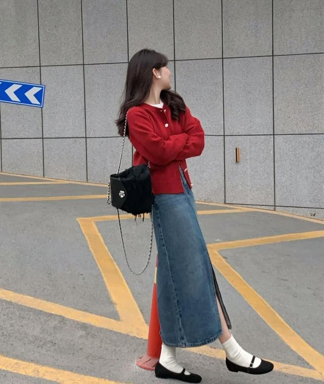 簡簡單單出門就好,這一套超級適合春天的,上短下長的組合,就是專屬於小個子女生的。紅色針織開衫+牛仔開叉半裙,不僅顯瘦還好看。