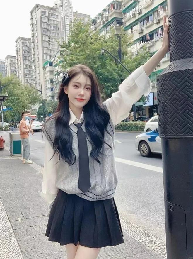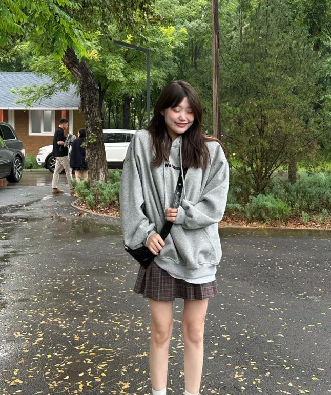 這是我心中韓劇女主的穿搭,灰色衛衣+百褶短裙,太少女啦,超級減齡的,永遠十八歲。