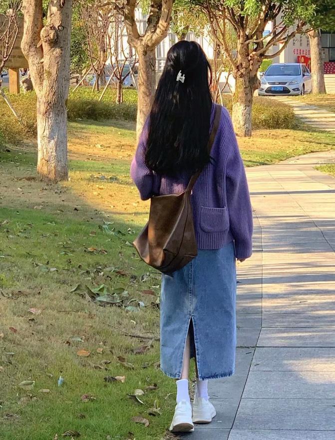 誰懂啊,入春的第一件上衣選毛衣就對了,這個紫色太好看了,搭配牛仔裙,或者是褲子都很香。
