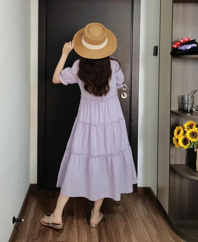 約會逛街都可以穿的丁香粉紫連衣裙,溫柔又不失甜美,裙子的長度遮過小腿肚位置,個矮的姐妹也是能輕鬆駕馭的。