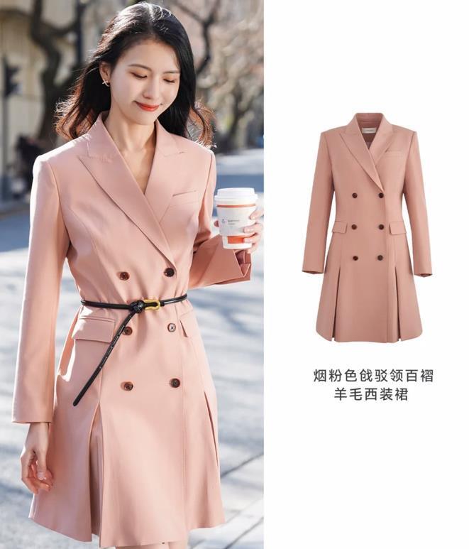 早春,外套+裙子的穿搭正合適,丁香粉紫色的外套,瞧着也太顯白減齡了,小短款的長度,簡直就是爲了小個子女生打造的。