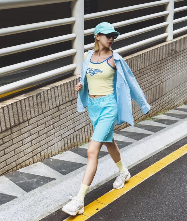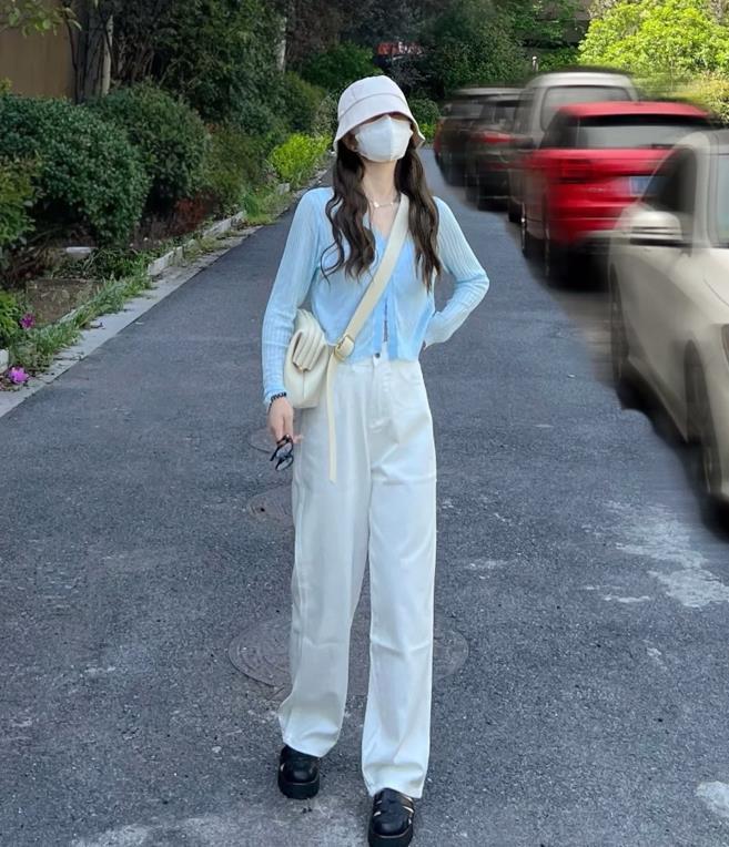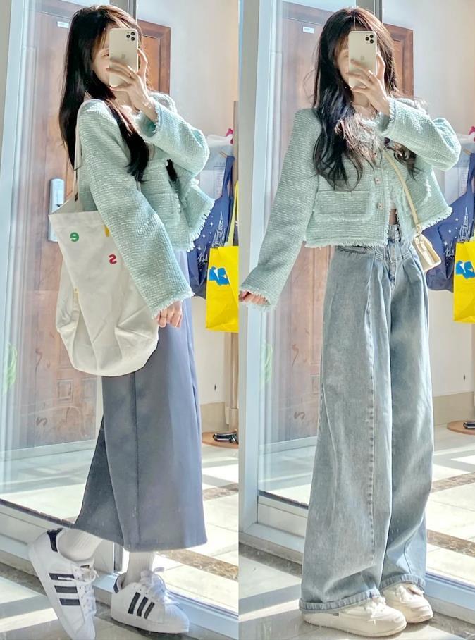 藍白配色也太好看清爽了吧?畢竟適合溫度回升後的春季,上短下長的組合,小個子女生穿起來,顯高挑又顯腿長。
