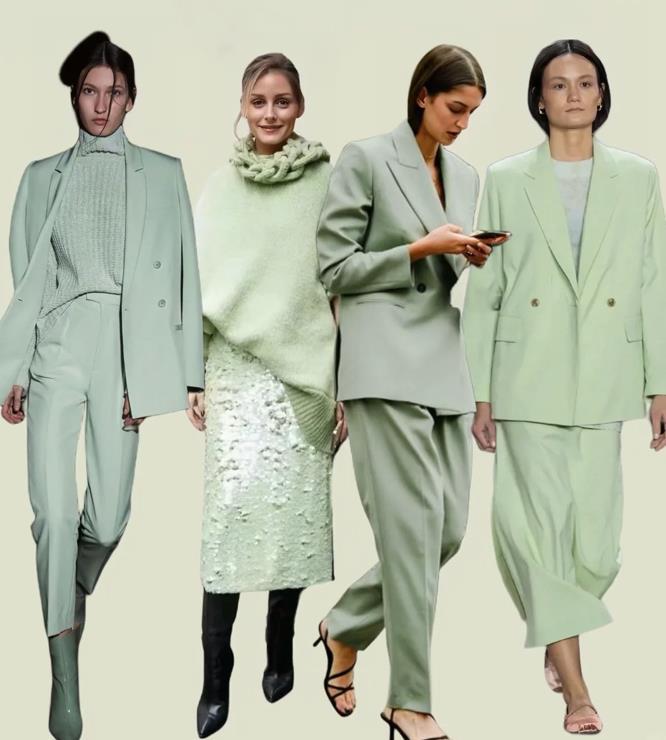 薄荷綠和龍篙綠是兩種不同風格的綠色,一種是帶些清涼的綠調,另一種則是淡雅的綠,這樣的搭配既時尚又得體。