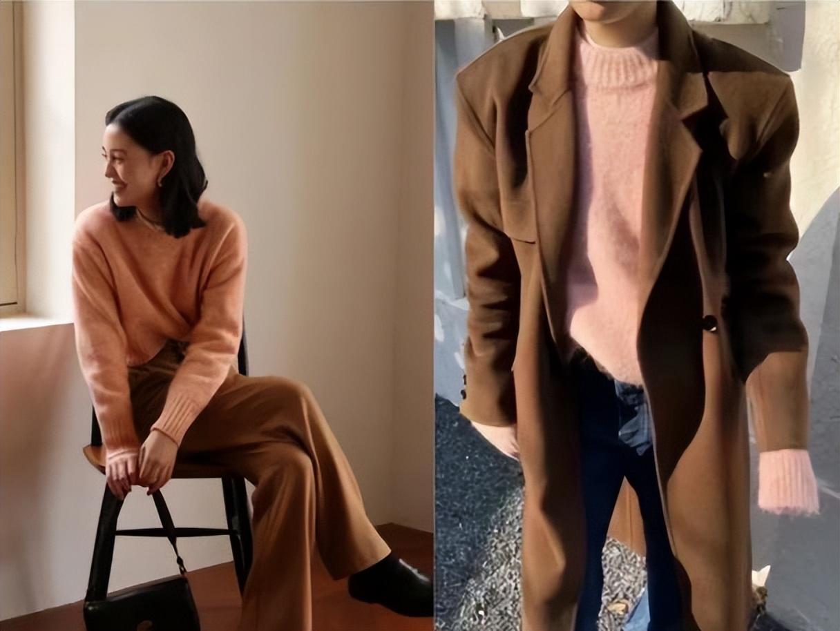 柔和桃+棕色,非常顯復古又不失文藝氣質的一套配色,棕色濃郁厚重,桃色則清新柔和,看似矛盾,實際上卻相互兼容。