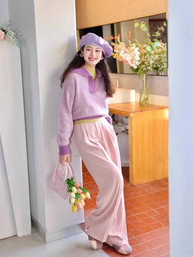 這個春天,穿搭上就應該運用一些靚麗的色彩,例如這種丁香粉紫色,它不是那種過於顯成熟的紫色調,而是比較低飽和度的粉紫,特別美。