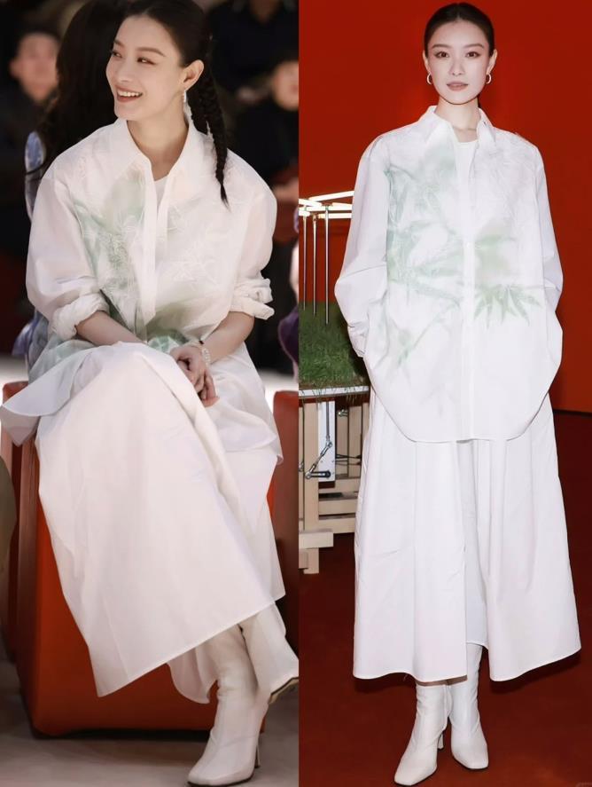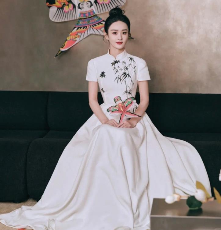 趙麗穎這件白色竹子元素的新中式連衣裙,太好看了,竹子代表的是正義、凜冽和骨節。有太多美好的寓意,高高紮起的丸子頭,很減齡。