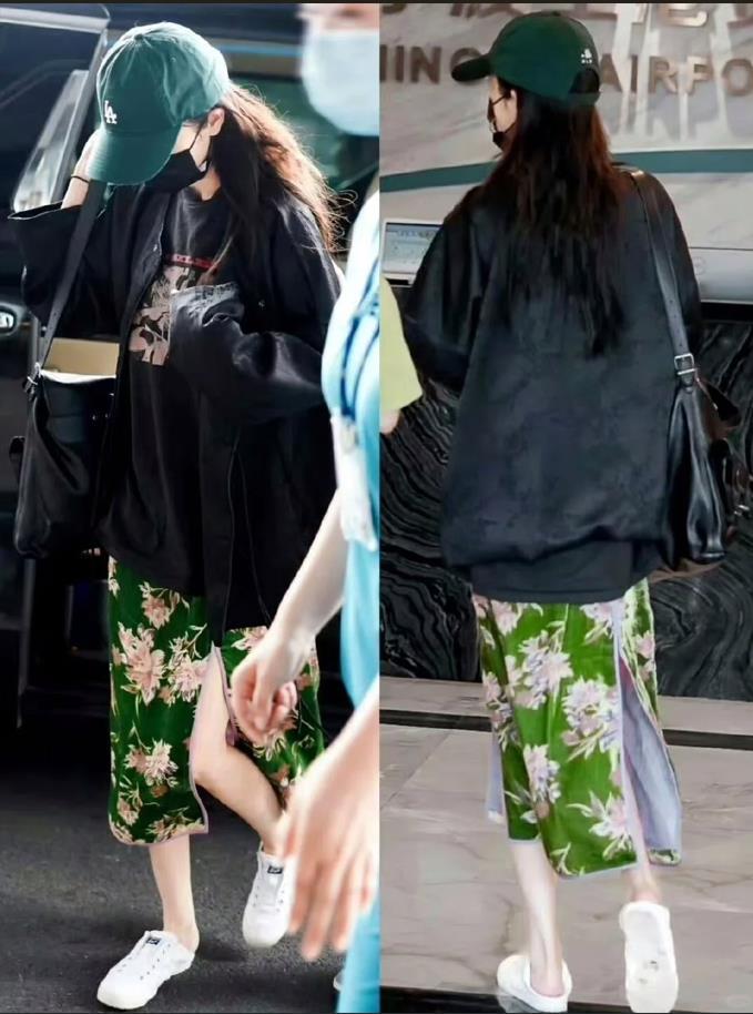 還有這一套,黑色衛衣+綠色新中式裙子,上簡下繁的組合,還有整個配色,都讓人覺得好看。