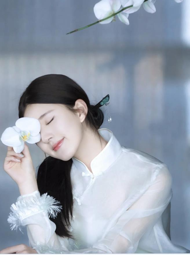 一直以來都覺得吳謹言很適合穿古典風的服飾,在新中式穿搭的襯托下,她的每一個動作都讓人心動。白色的新中式裙子,搭配中式的髮型,溫婉美人的形象就塑造了。