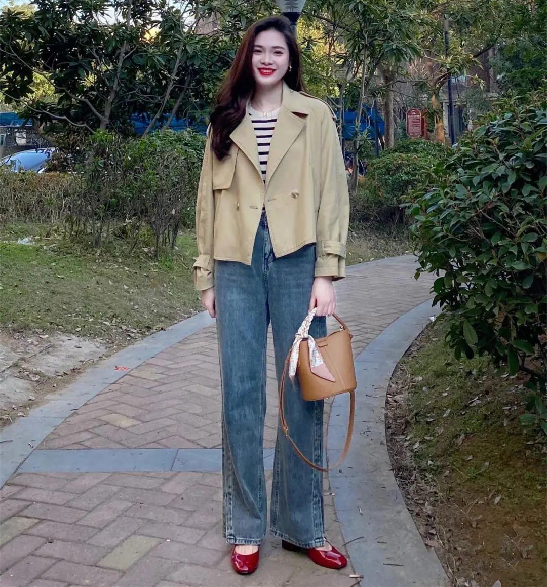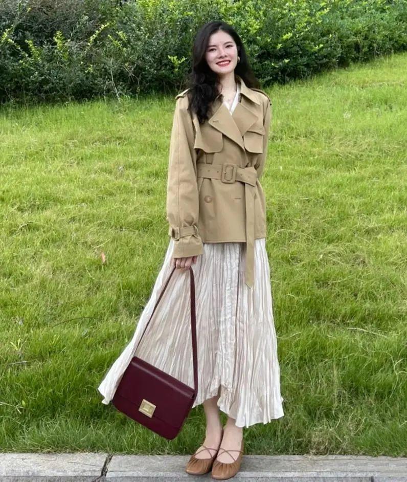 卡其色的短款風衣很經典,配裙子和褲子都好看。風衣夾克也是今年的流行款,杏色+棕色,非常帥氣,屬於隨便怎麼穿都時髦顯氣質。