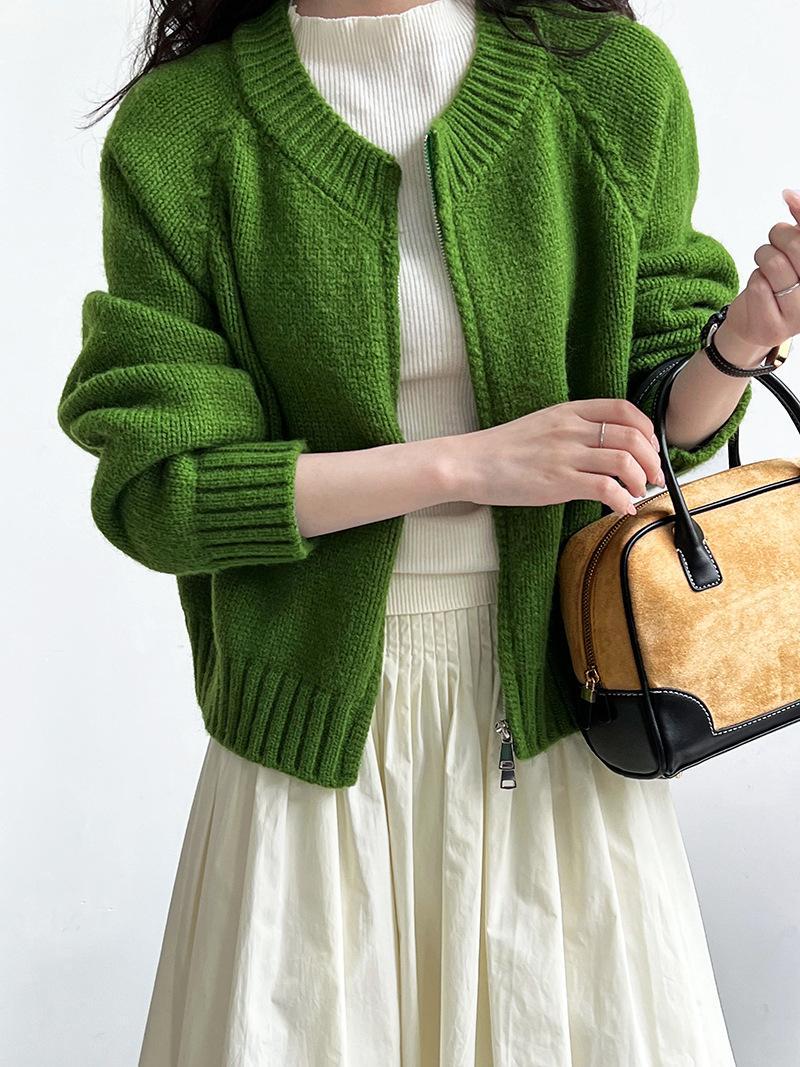 不管是拉鍊設計還是紐扣,慵懶風的毛衣開衫都是春季的舒適之選。當然了色彩可以選擇比較多巴胺的色系,突出好氣色。