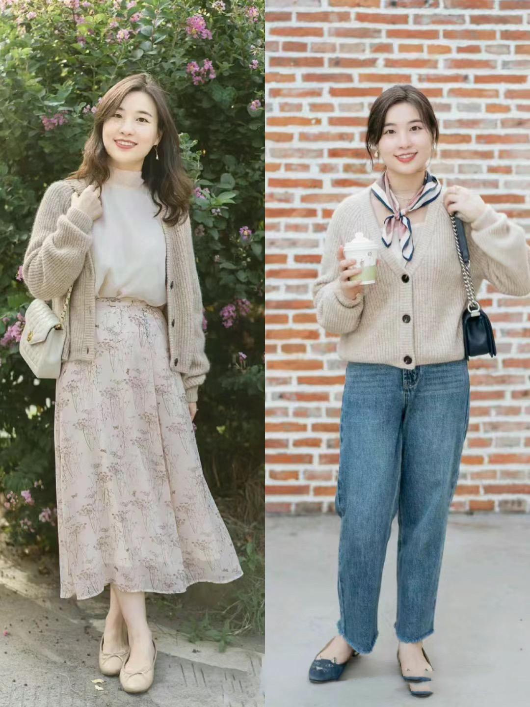 40歲女人可能身體形態上沒有那麼纖薄,所以搭配針織衫的時候可以選擇比較寬鬆的款式。內搭配基礎的同色系,可以表現出一種溫婉雅緻的姿態。