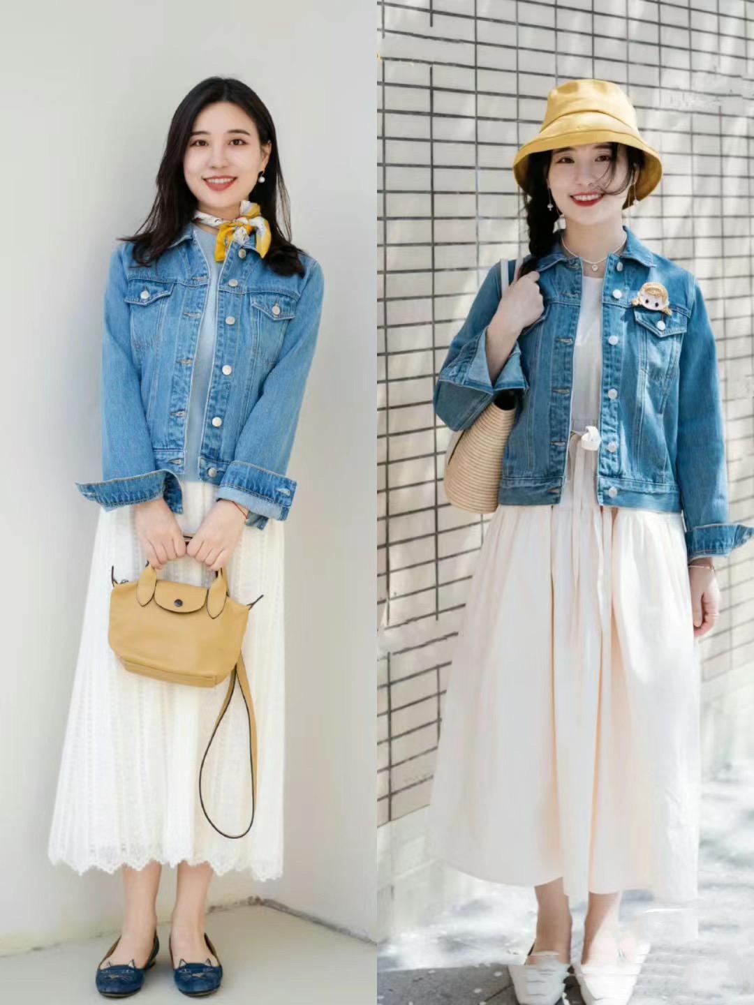 想要時尚減齡,就搭配淺藍色的牛仔外套,想要復古文藝,就搭配復古藍的牛仔外套。想要更加高級顯白,就搭配深藍色牛仔外套。