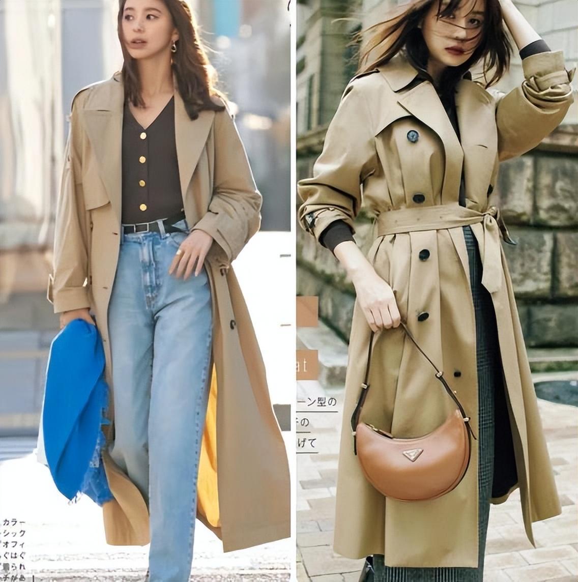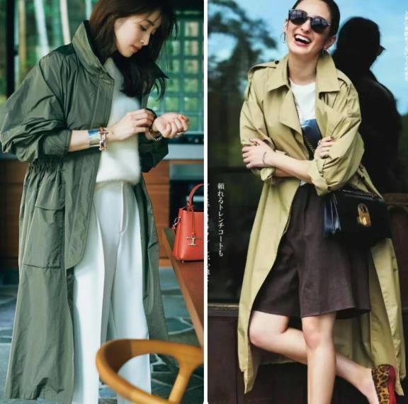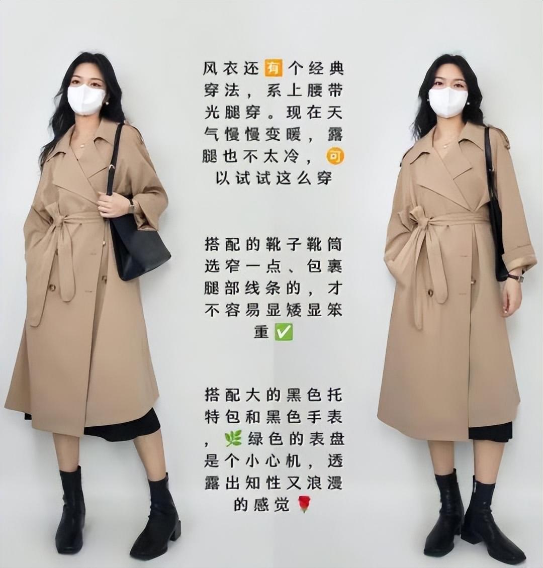 要知道,風衣的腰帶不僅可以向後系,還可以向前系。春天裏、光腿穿風衣早已成爲一種時尚,輕盈洋氣又很顯高。