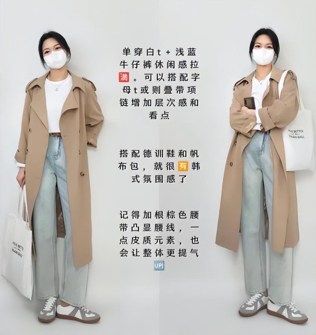 當我們穿風衣時,沒有必要總是選擇太個性的款式。最簡單低調的組合,就是非常清爽耐看的。比如T恤+牛仔褲的組合,會給人一種時尚大氣的美。