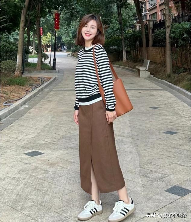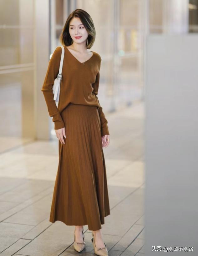 長褲單品真的任重道遠,既需要維護線條的縱向延展性,又需要保護線條的收縮感,那麼,選擇棕褐色或者是棕色,我們就可以最大程度的優化腿型的纖細感。