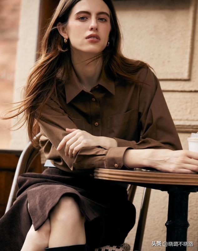 一套造型,如果要用美拉德色系作爲主色調,那麼,明暗造型的遞進感就會成爲造型的視覺焦點,比較推薦內襯的顏色淺一點,外套的顏色深一點,這種小色塊的內襯在視覺上的提亮效果,對於不同身材的女人都非常友好。