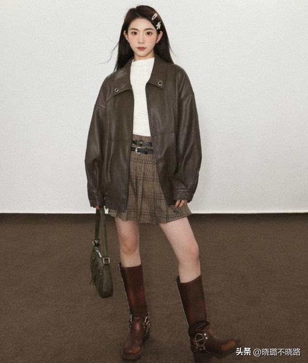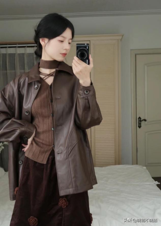 咖啡色比較適合皮質面料的服裝,所以比較常見於皮衣或者皮裙還有皮質的長裙,聯繫比較小的女生,可以選用疊穿的穿法,設計出造型2到3層的視覺效果,用短裙來露腿,造型的清爽性和時尚都很好的增加。
