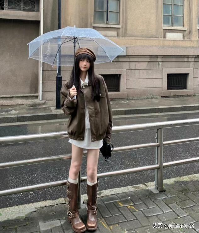 ③短裙和襯衫選白色作爲內襯,調節露腿效果配長靴