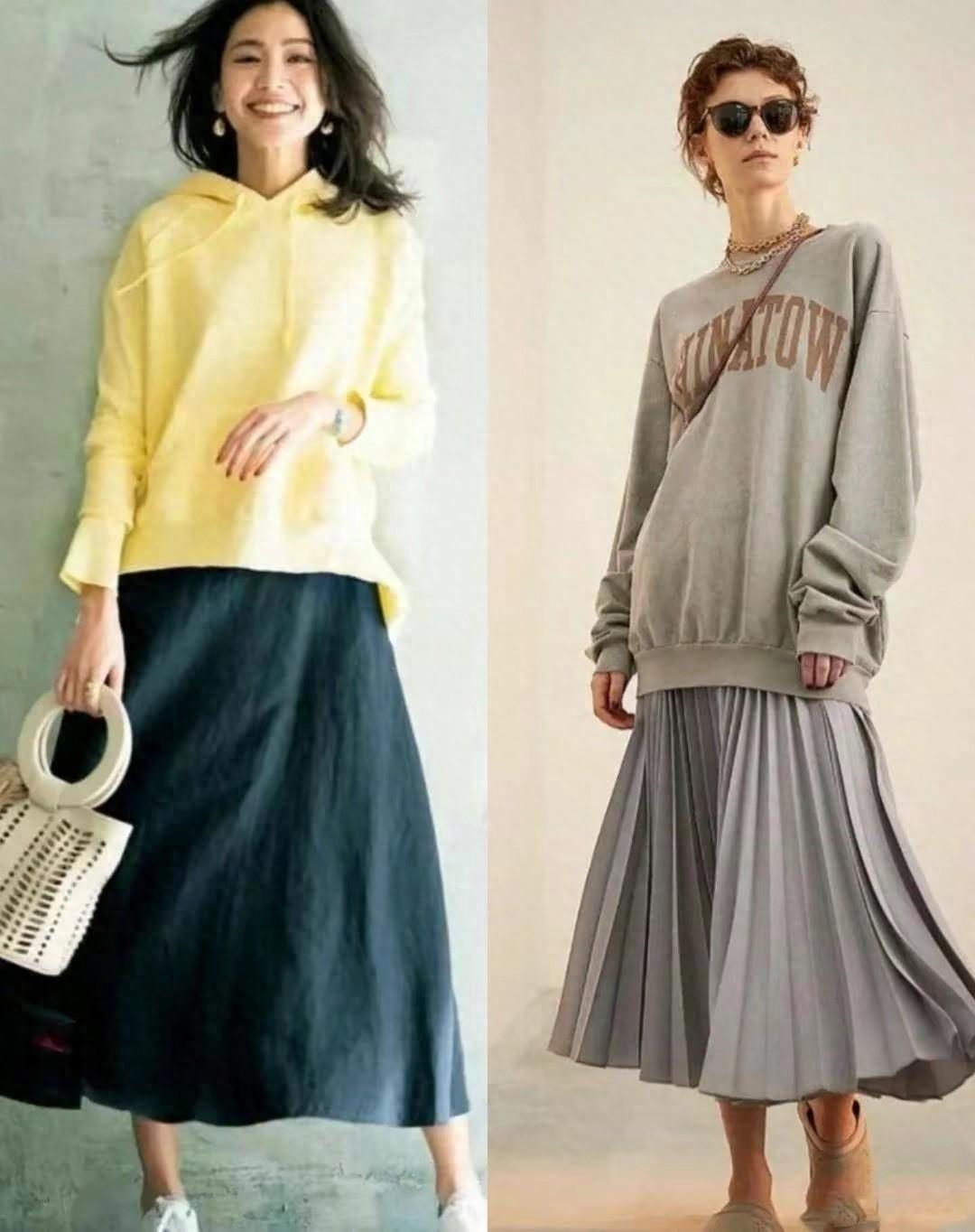 對於四五十歲的女人來講,想要更加溫柔減齡一些、可以嘗試無齡感單品。比如休閒風的衛衣、或者高腰的A字形半身裙,都是日常且基礎的單品。