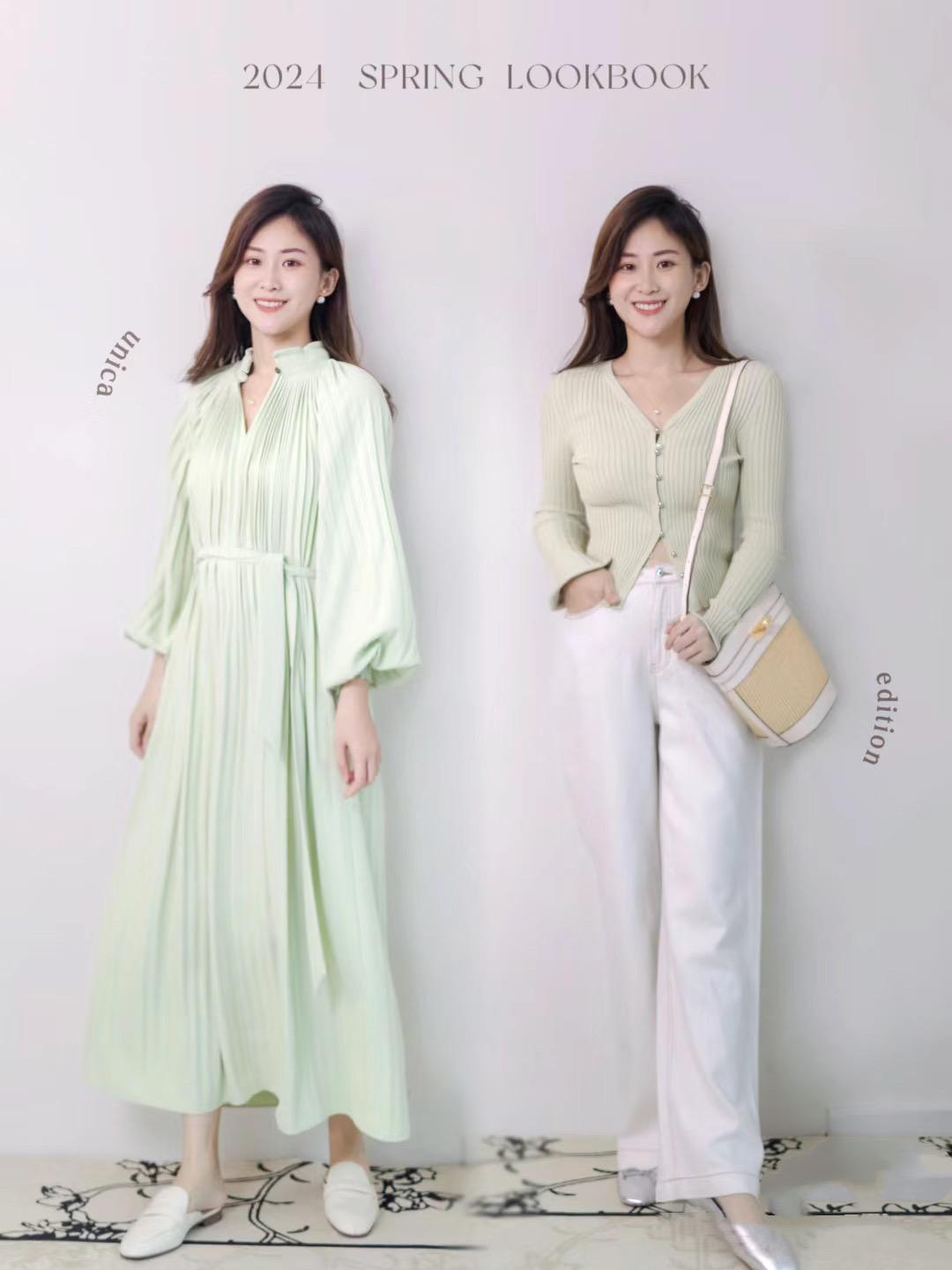 春天有嫩綠的枝丫,也是青綠的池水,淺粉色的桃花、浪漫的櫻花,這些色系都是溫和柔軟的,我們的穿搭也應該與大自然的氛圍完美融合。