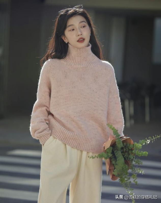 上衣造型的疊穿設計,並不是越多越好,2到3層的疊穿,足夠應付早春的低溫,而且在領口的部分,小高領可以疊加大領口的外套,造型層次度拉滿,穿單件杏褲纔會不顯單調。