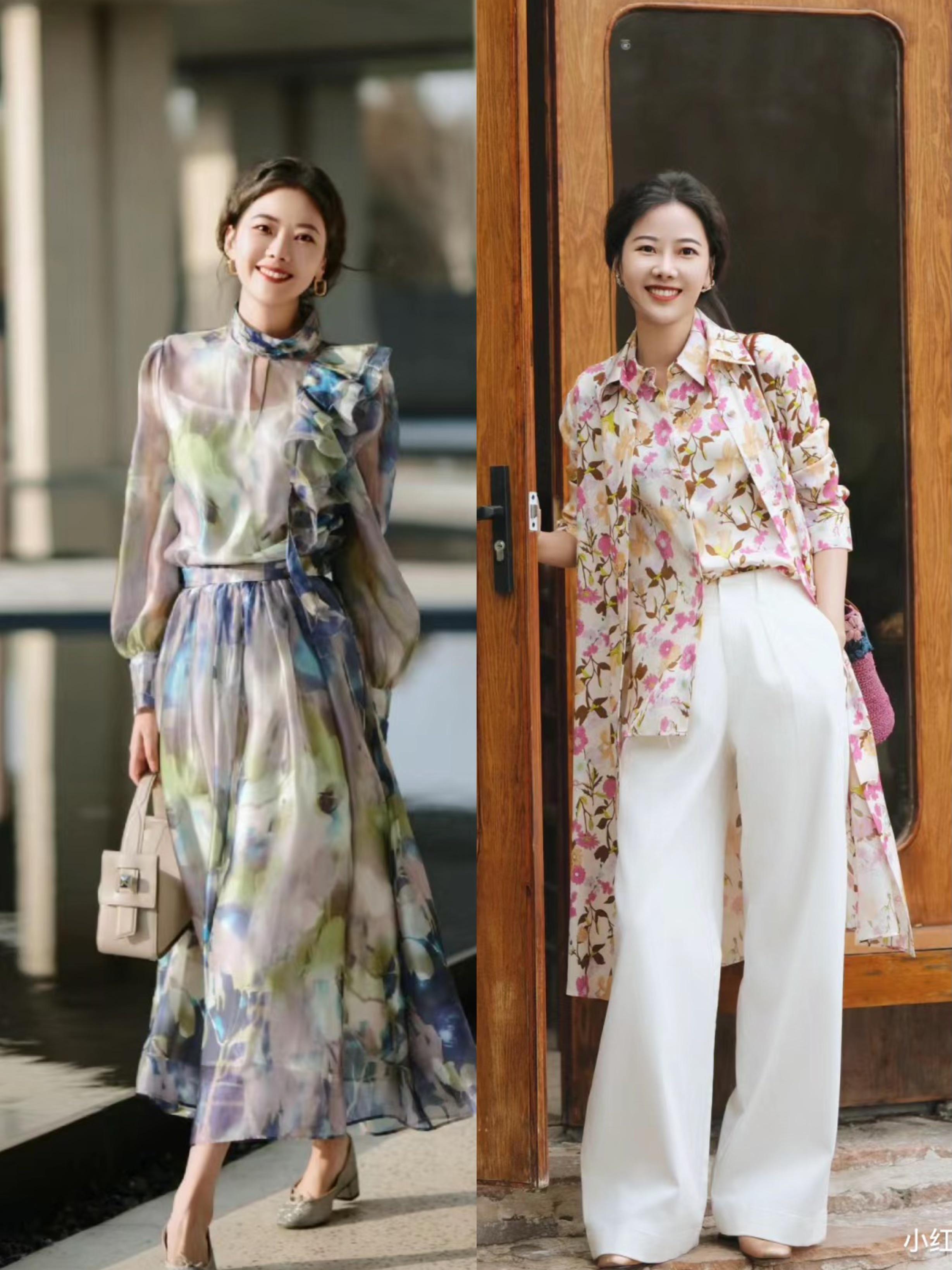 不要搭配大面積大色塊亮色系的印花,很容易給人一種土氣感。我們可以選擇細小的碎花、或者扎染的碎花、以及低飽和度的碎花,更加溫柔浪漫不挑人。