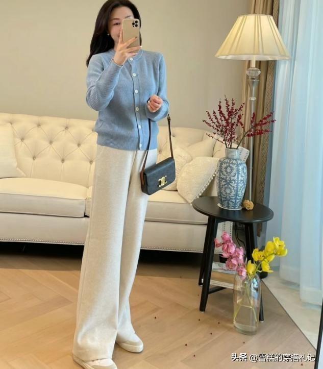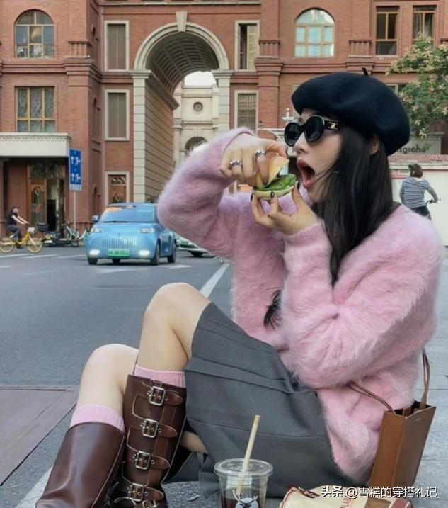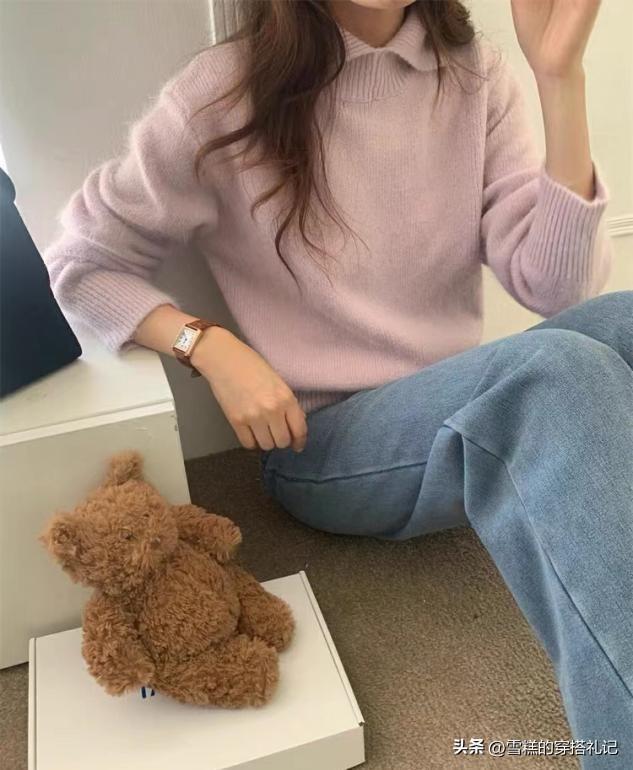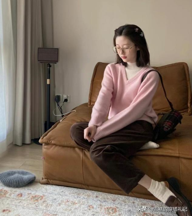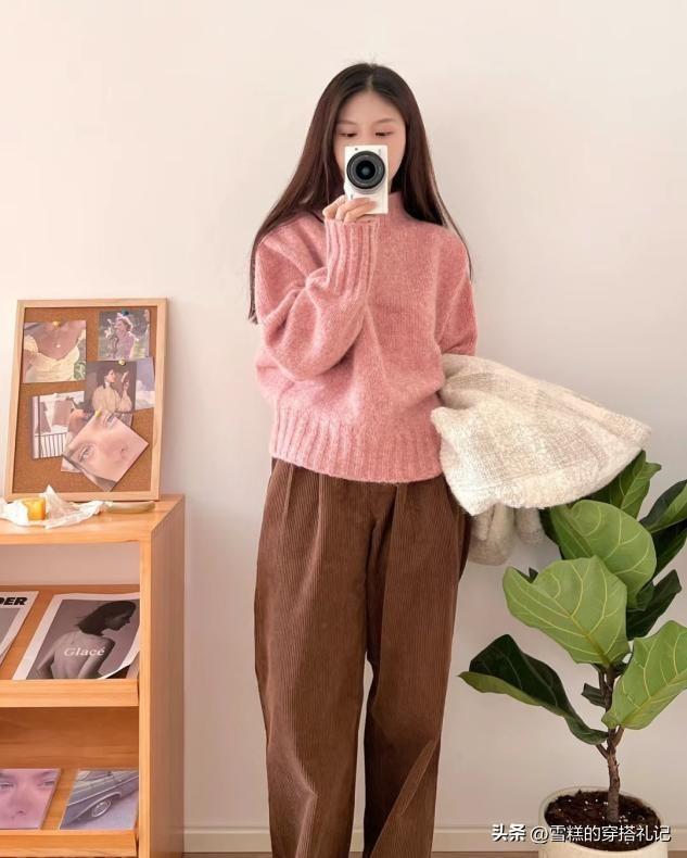 毛衣的質感來源於我們對於原始毛線的選擇,如果你選用的是羊毛搓成的毛線,那麼織出來的毛衣就會有一層絨絨的特點,用茱萸粉色來作爲整體色調的陪襯,整體減齡和溫和的效果能夠翻倍。