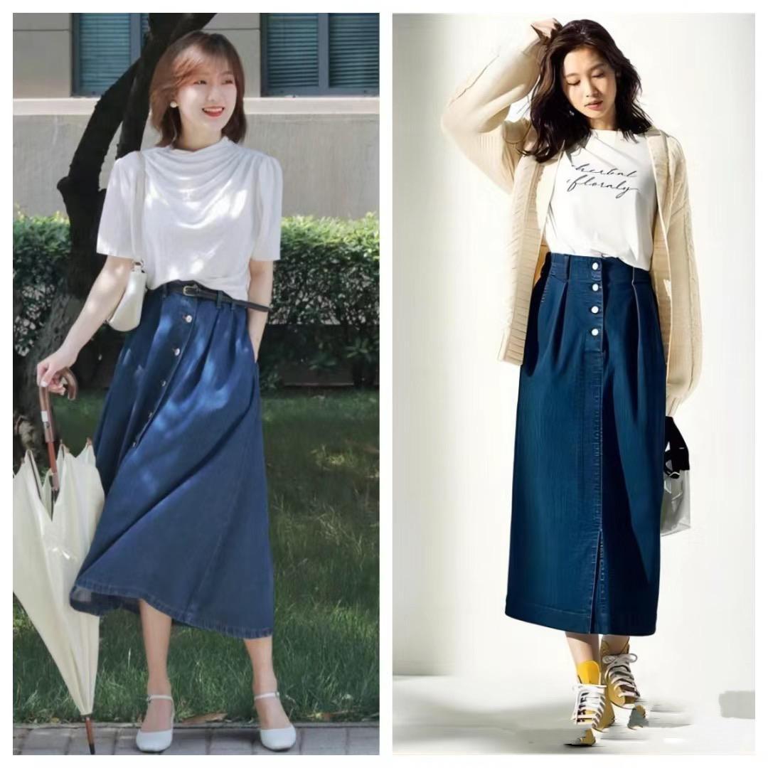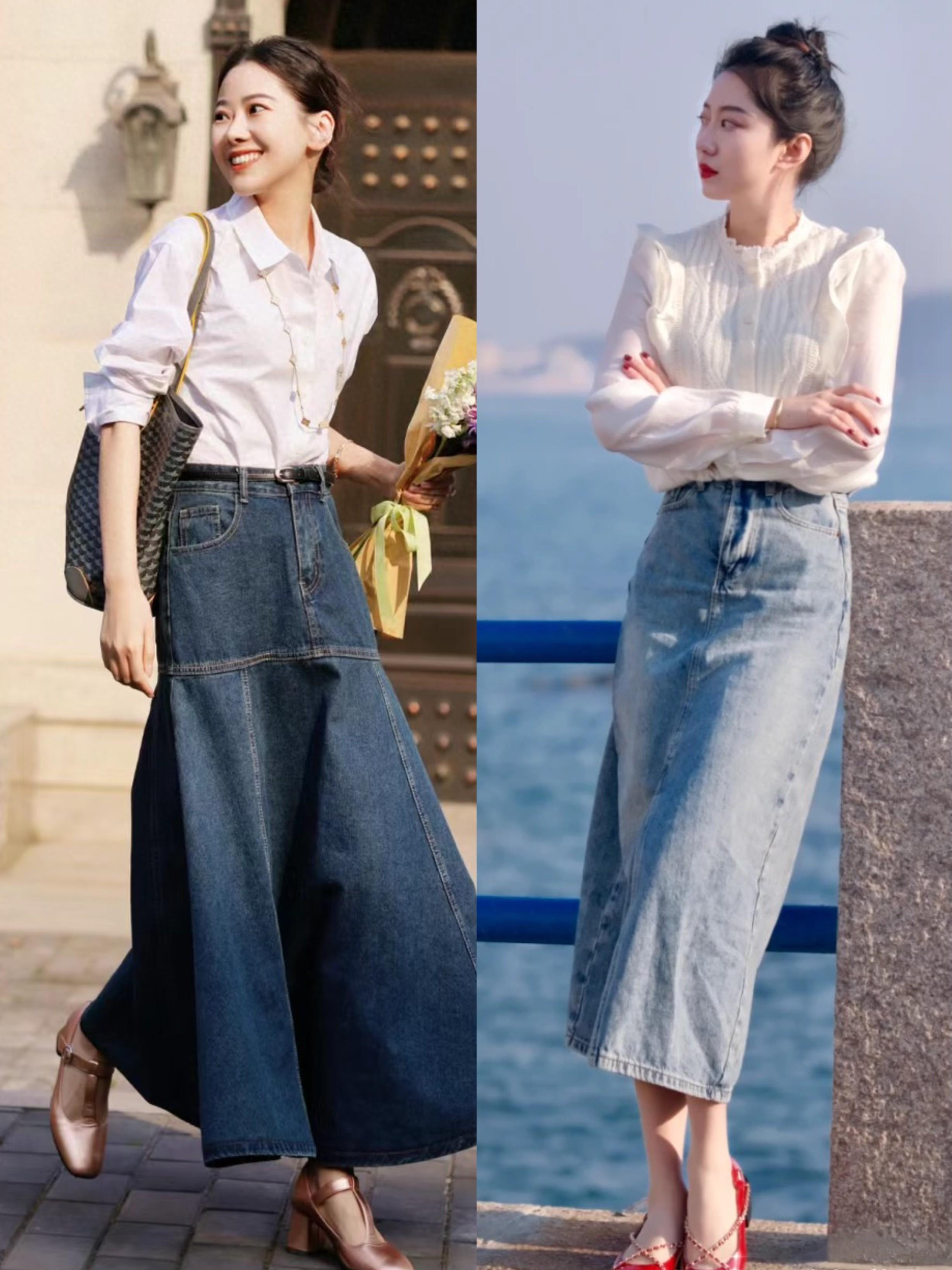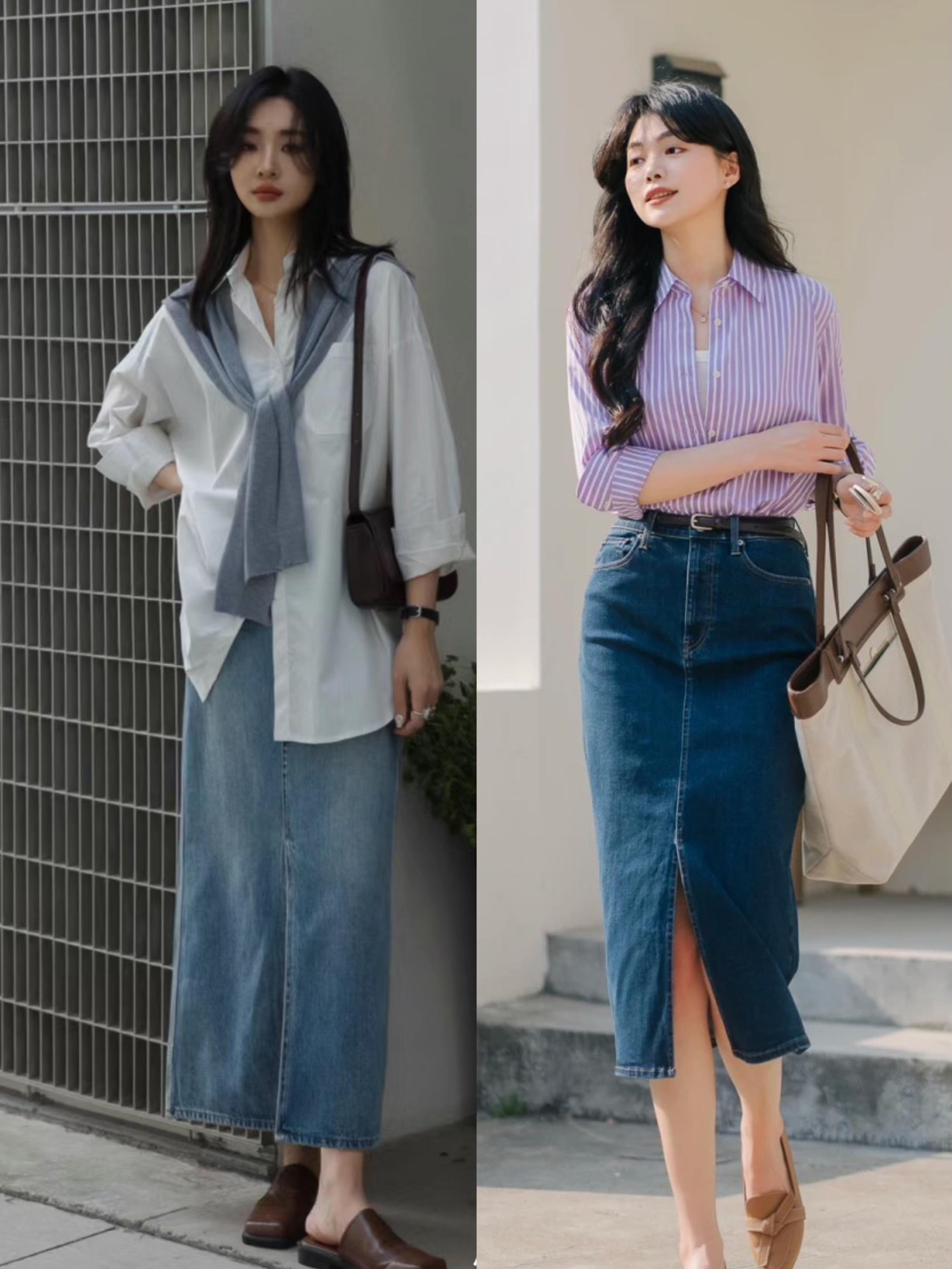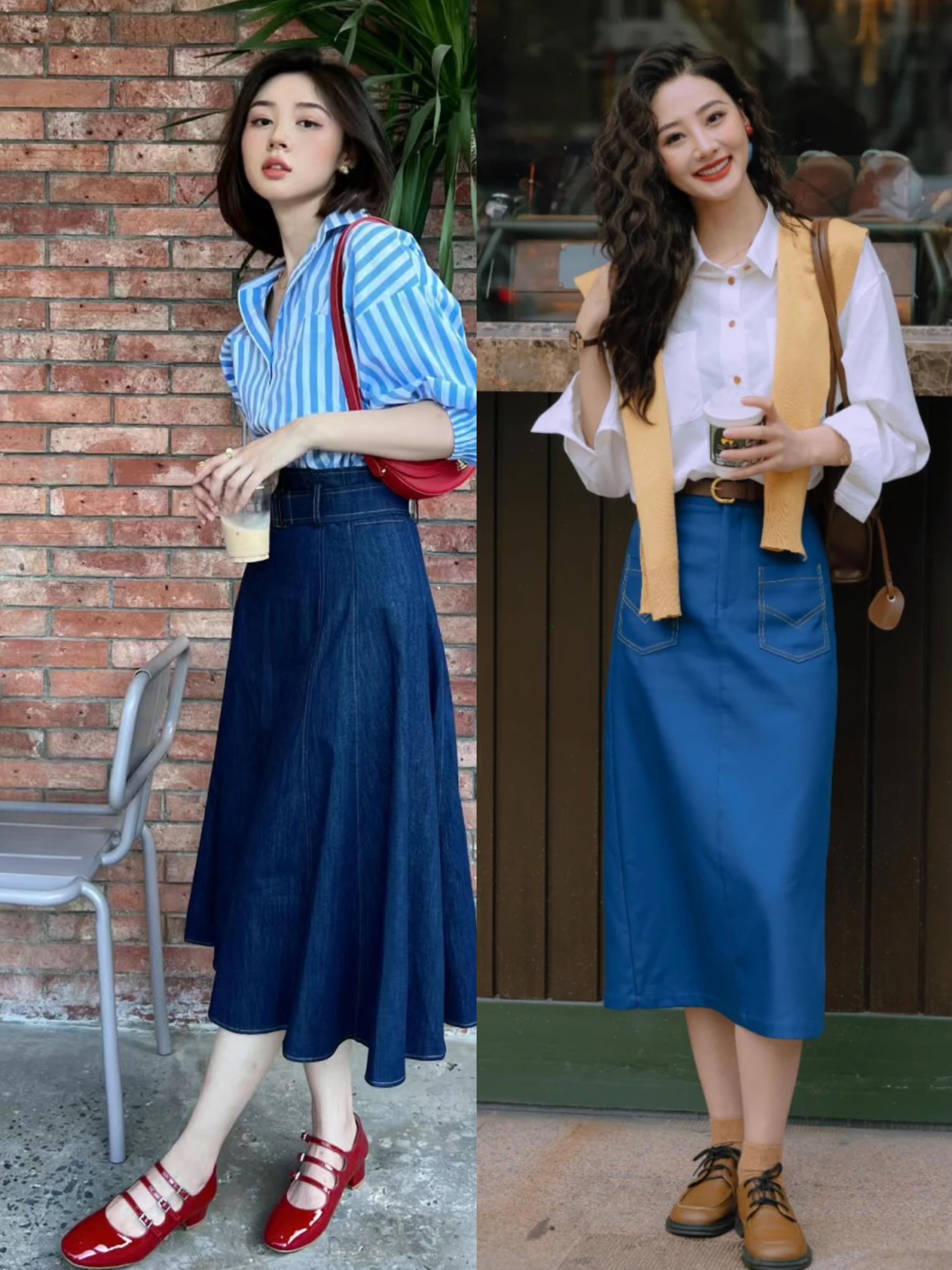 別看襯衫+牛仔半身裙,是一種基礎的搭配,但在風格造型上卻更加多變。不同款式、面料、色彩的襯衫,搭配不同色彩、款式的牛仔半身裙,所呈現出來的風格氣質也不盡相同。