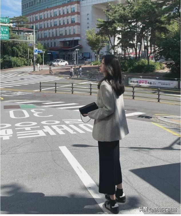 針織裙的搭配技巧在通勤場合當中的組合基本上都是與西裝外套同時出現的休閒風格的確定,用肩寬款式的西裝平衡頭肩比例,黑色的直筒裙去維護身材的纖細苗條效果,只穿運動鞋也是通勤的一把好手。